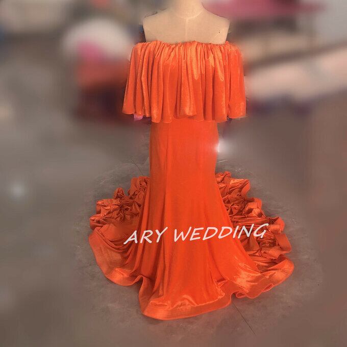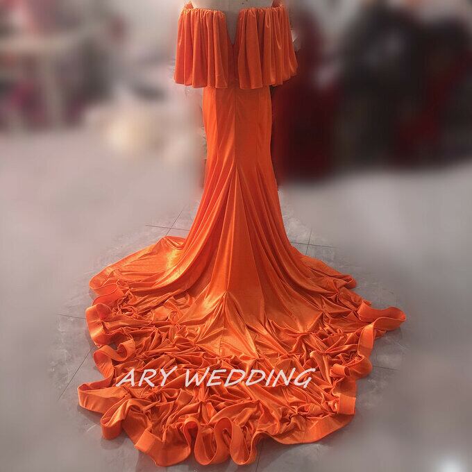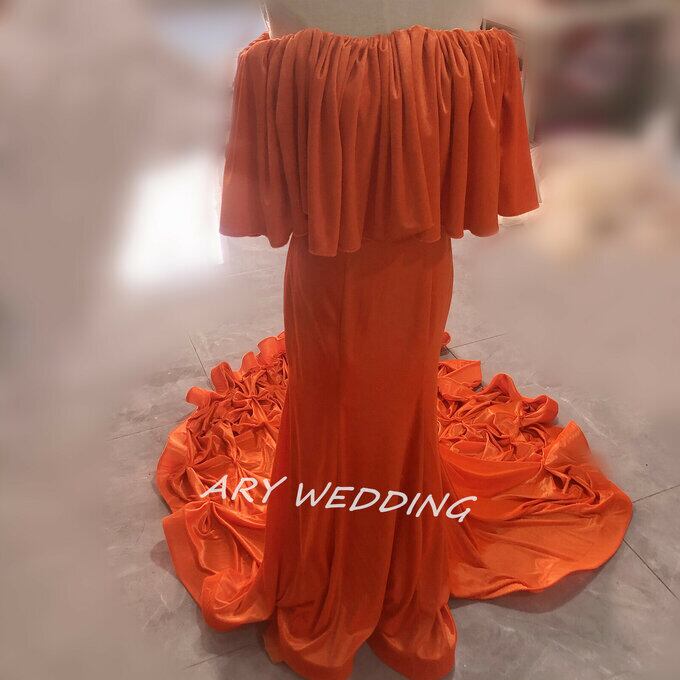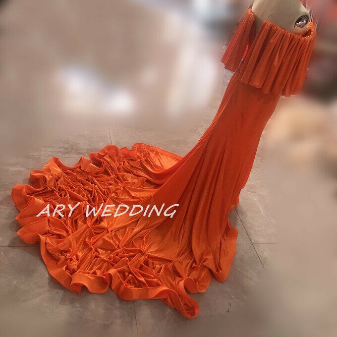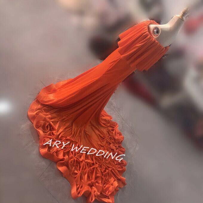 エレガント パーティードレス オレンジ 優雅なシルエット 華やかなトレーン 披露宴 大き 2次会