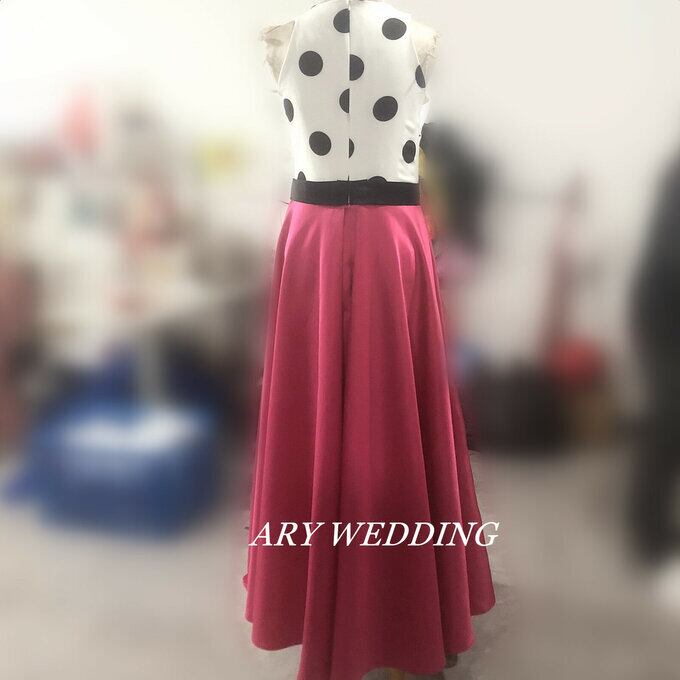ショッキングピンクカラードレス 可愛いドット柄ワンピース 高級サテンボリュームスカート お色直し オーダーメイド可能