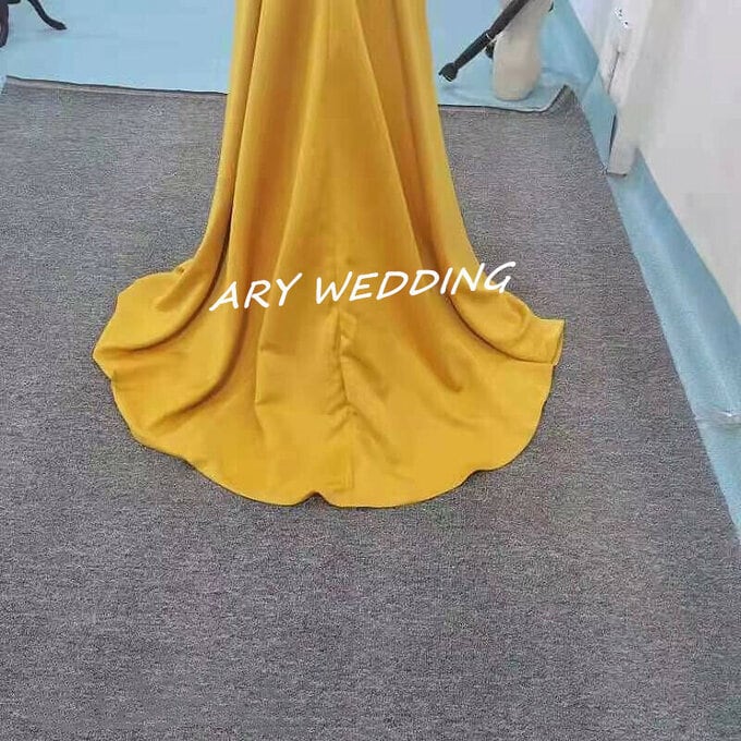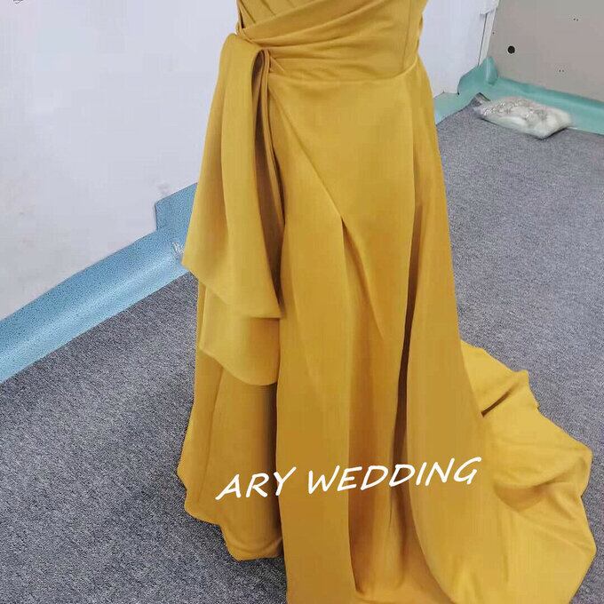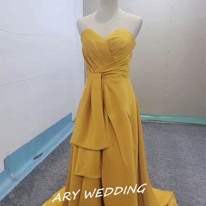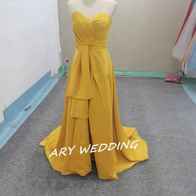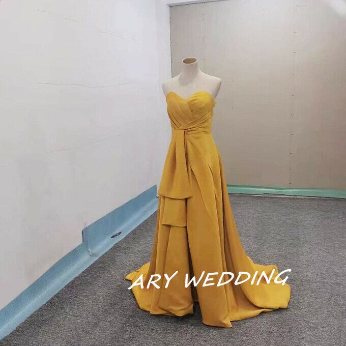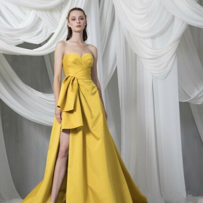 豪華!パーティードレス イエロー ベアトップ スリット ロングドレス クラシカル エレガント 音楽会/発表会など2次会