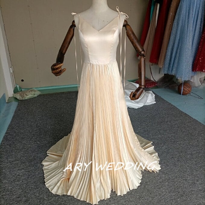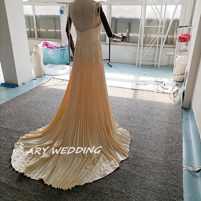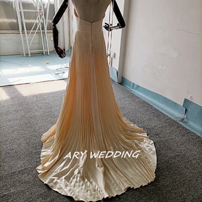 豪華!キャミソール パーティードレス 薄シャンパンの色 スリーツスカート 背中見せ 2次会/合コン ロングドレス