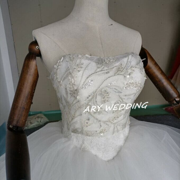高品質!ウエディングドレス ベアトップ ボレロ ハンドビーディング 花嫁/ウェディングドレス/ブライズメイド/結婚式