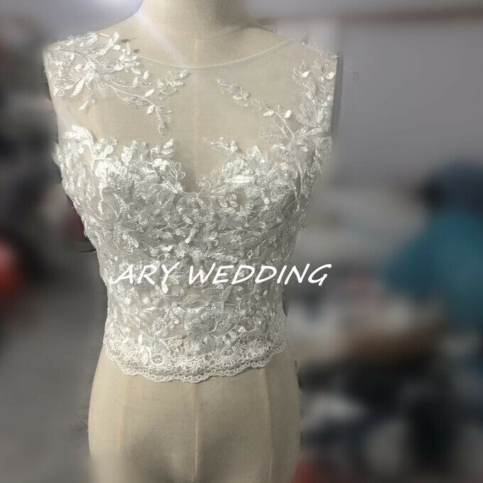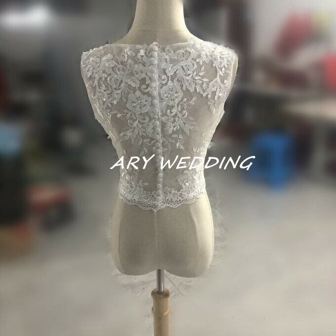 ウエディングドレス用ボレロ トップスのみ ノースリーブ  くるみボタン 繊細レース オーダー可能