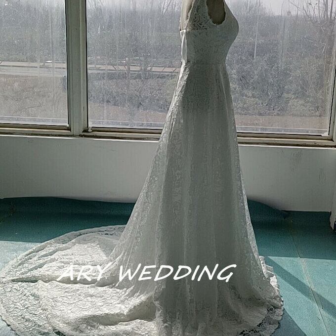 高品質!総レース オフホワイト 背中見せ ウエディングドレス エレガント クラシカル エレガント 憧れのドレス