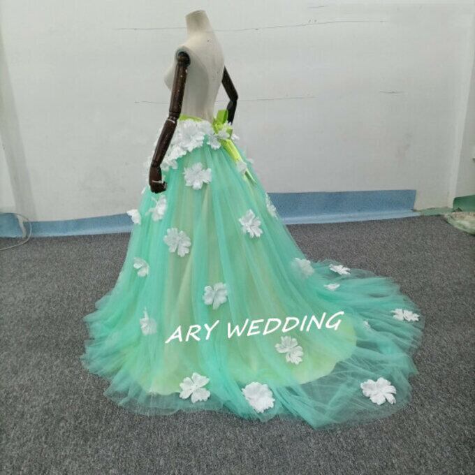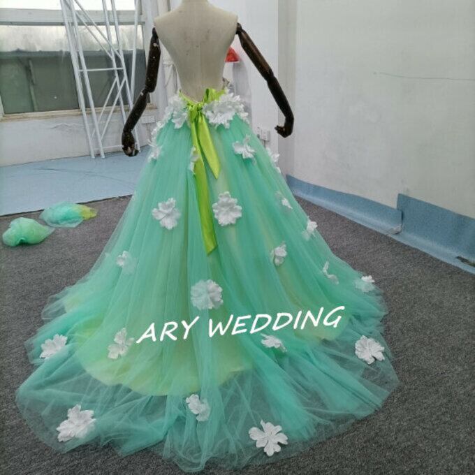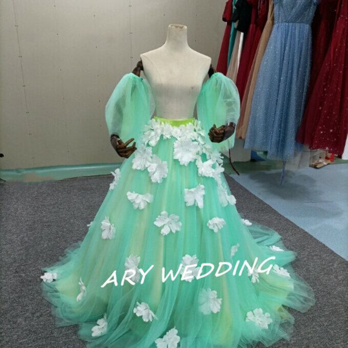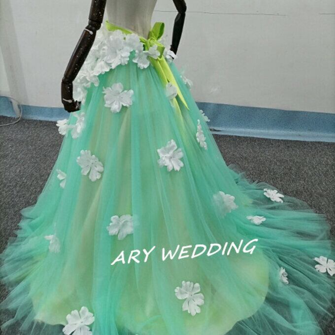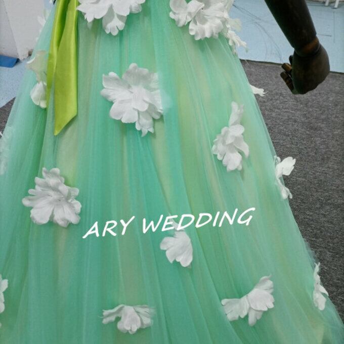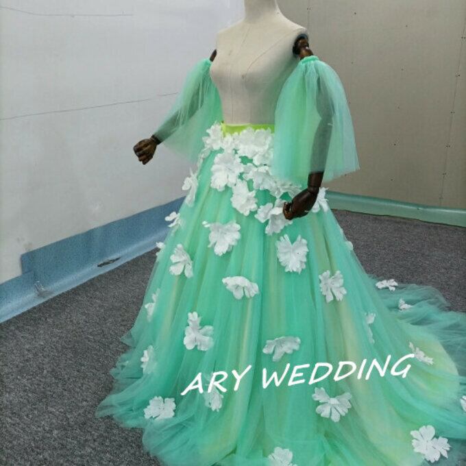 ウエディングドレス オーバースカート チュールスカート お花、袖付き お色直し グリーン