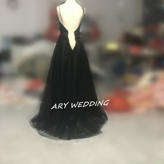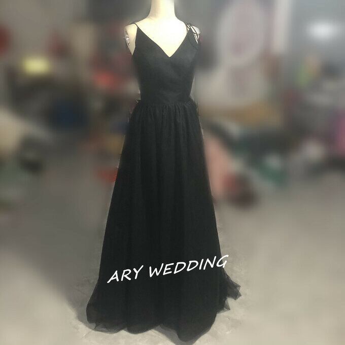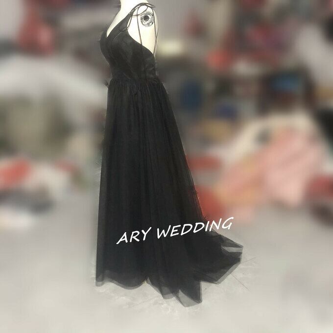 高品質!キャミソール パーティードレス 黒 ソフトチュール 短トレーン 前撮り 2次会/合コン/挙式