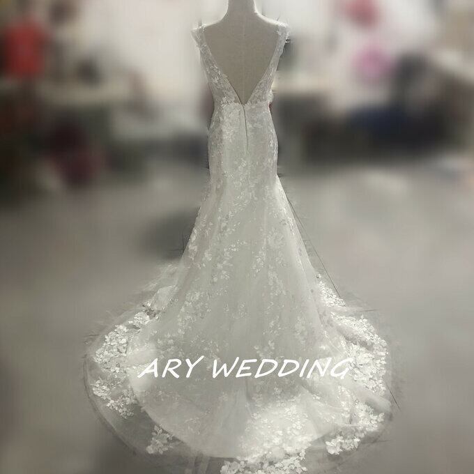 Vネックドレス 総レース オフホワイト 背中見せ ウエディングドレス クラシカル エレガント 憧れのドレス