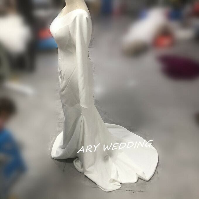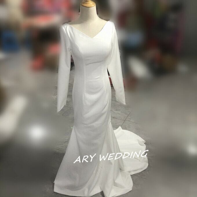 高品質!フランス風 ウエディングドレス 花嫁 /2次会 ホワイト Vネックドレ 長袖 ロングドレス