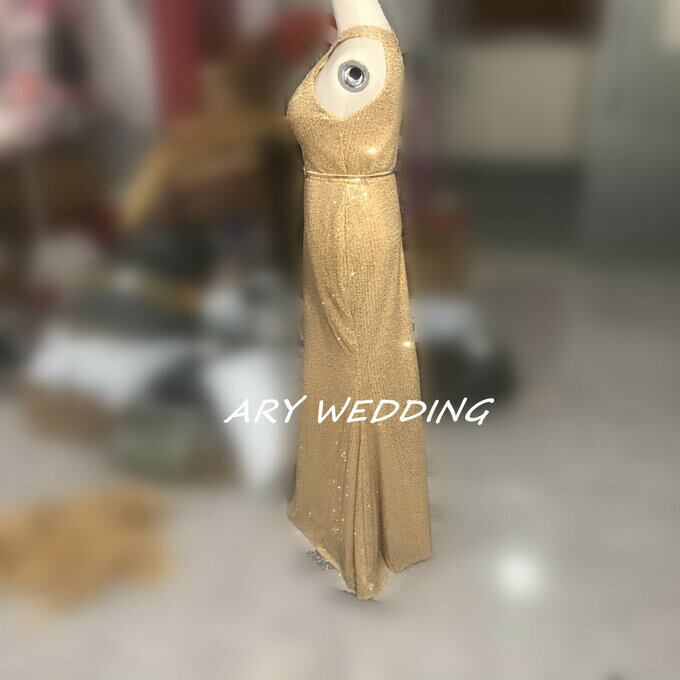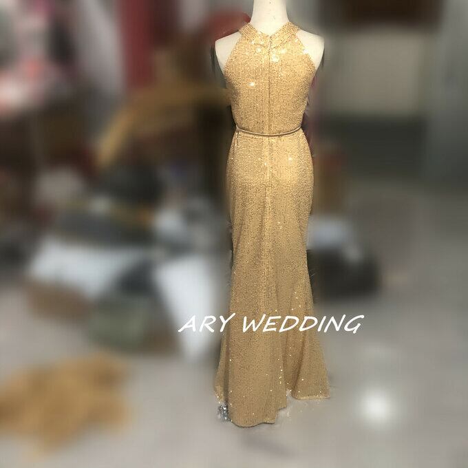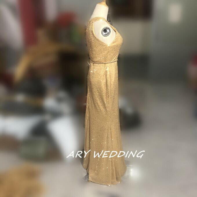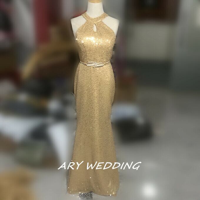 カラードレス ゴールド アンモニア レース スパンコール マーメイドライン 華やか イブニングドレス