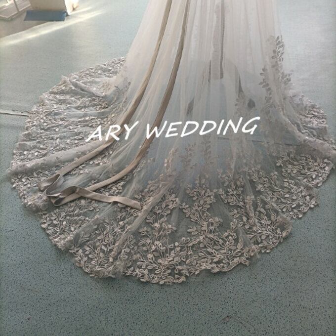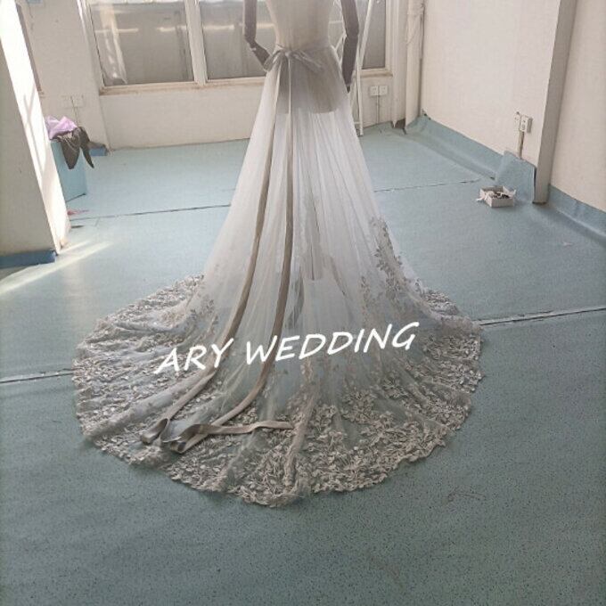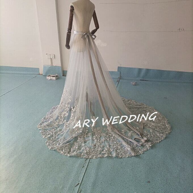 大人気上昇ウエディングドチュールスカート 薄シルバー リーフ刺繍 華やかなトレーン 花嫁/ウェディングドレス/ブライズメ
