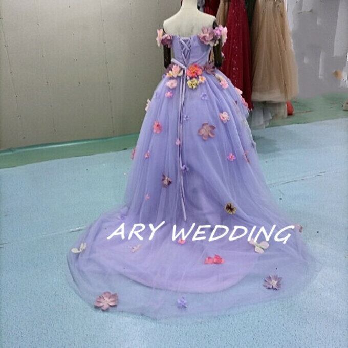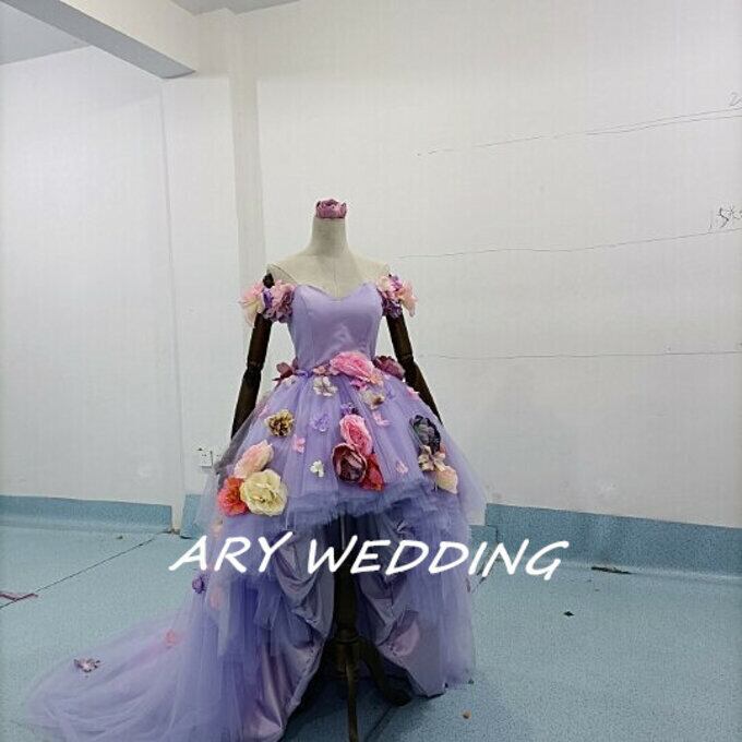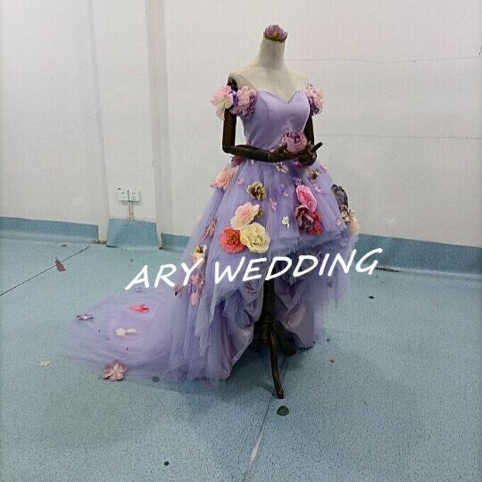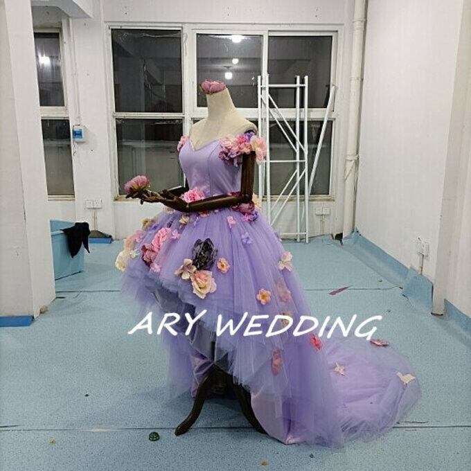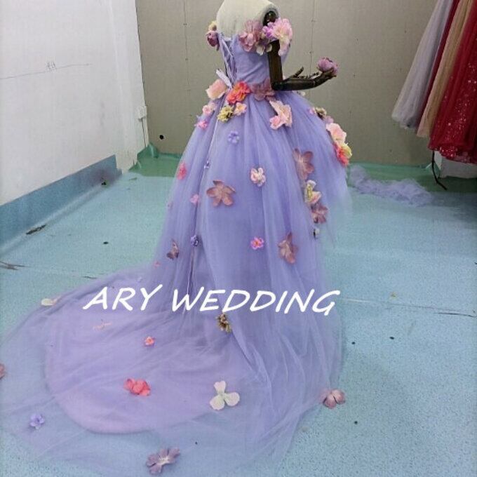 高品質!カラードレス 薄紫 フィッシュテール 花モチーフ 可愛い プリンセスライン 花嫁/ウェディン
