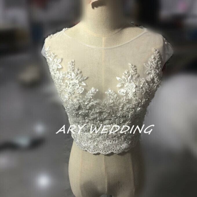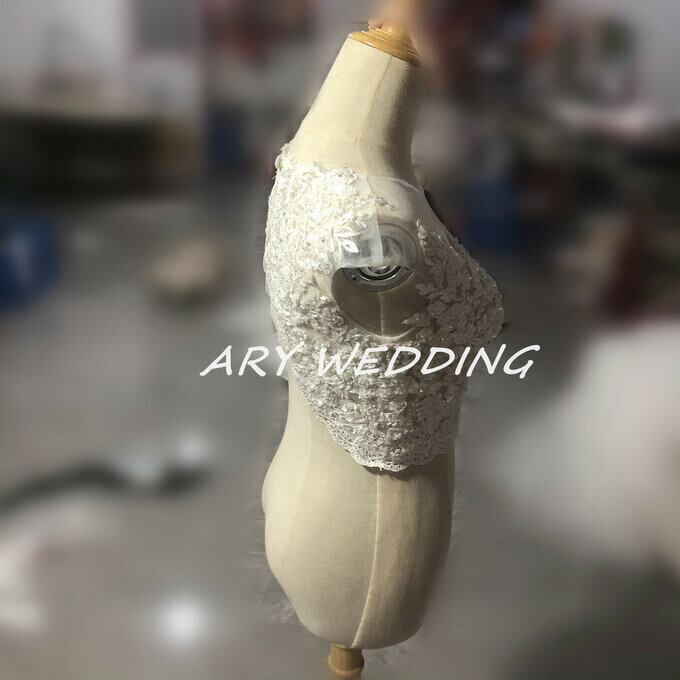 ホワイト背中開き ノースリーブ ウエディングドレス用ボレロ トップス 上品レース オーダーメイド可能