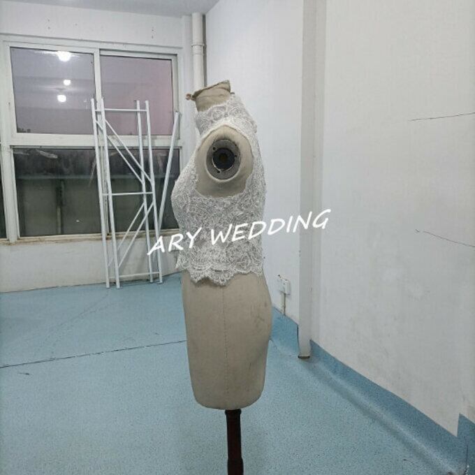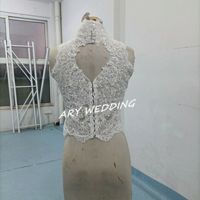 フランス風 ウエディングドレス ボレロ オフホワイト プリンセスライン ホルターネック 編み上げ 花嫁/ウェディングド
