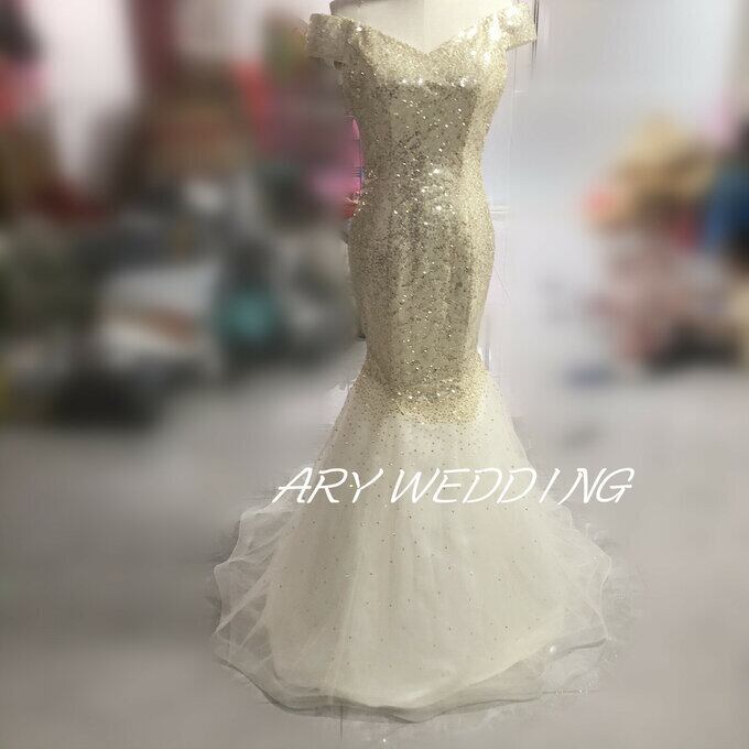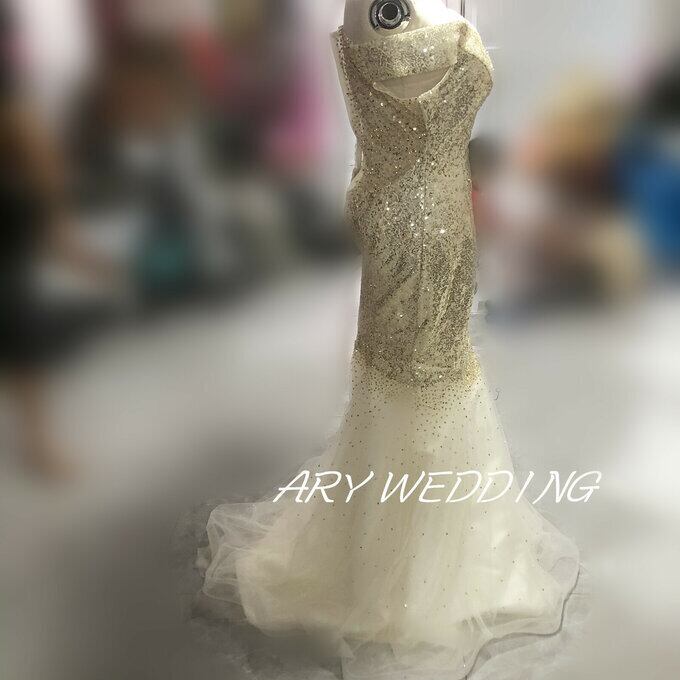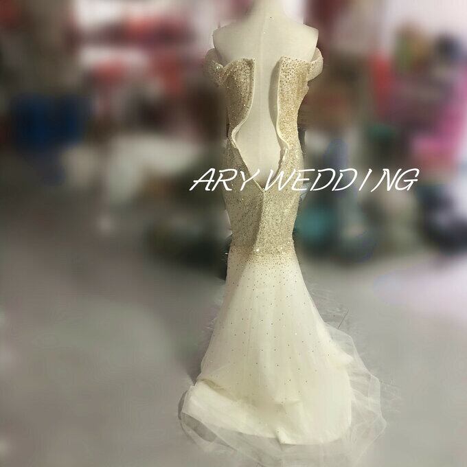 セクシーなマーメイドパーティーの夜のドレスは肩を見せて花嫁のドレスの薄い紗が輝い 披露宴/挙式