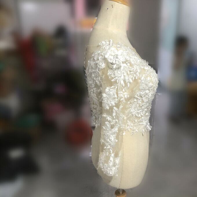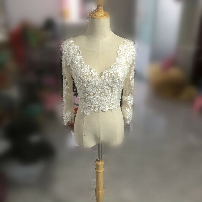ウエディングドレス トップスのみ 3D立体レース刺繍 ボレロ 七分袖丈 花嫁/ウェディングドレ