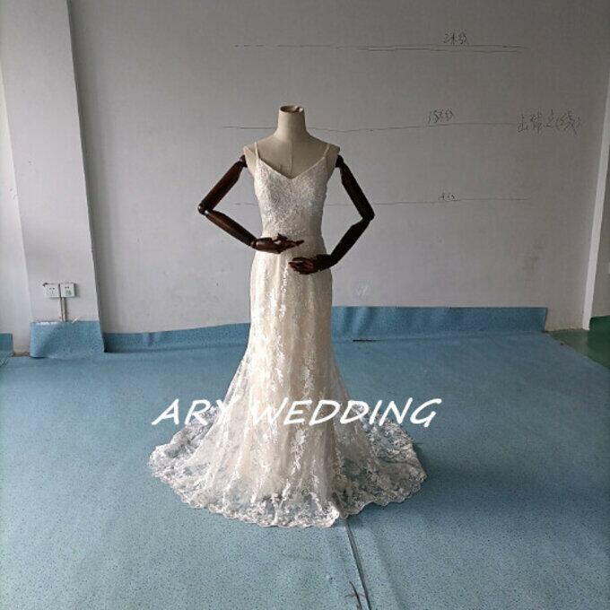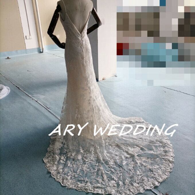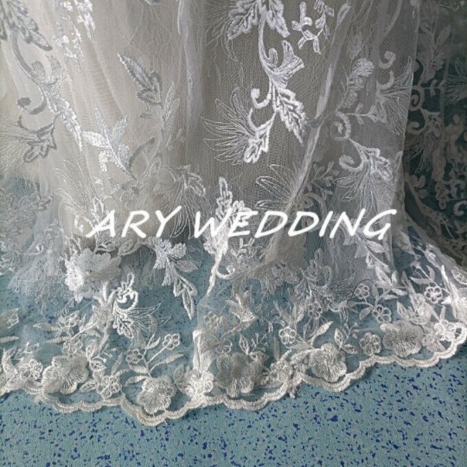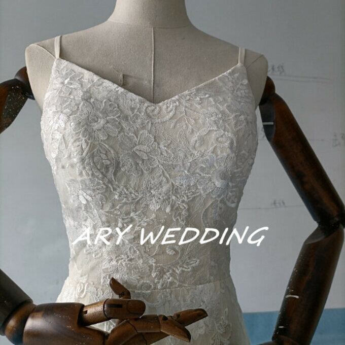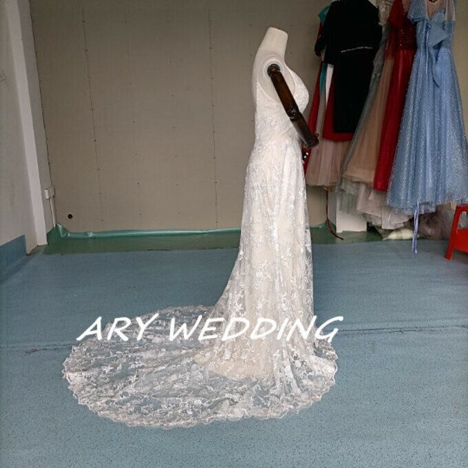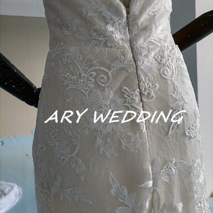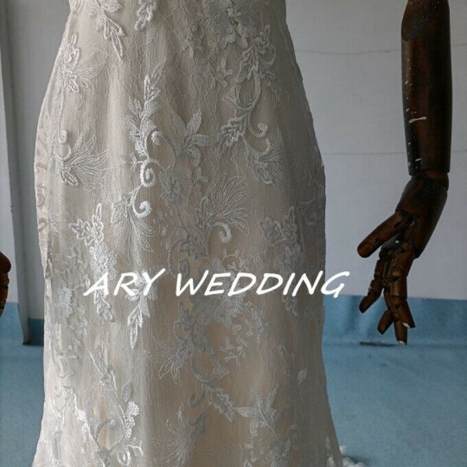 花柄刺繍 フィッシュテール 薄シャンパンの色 ウエディングドレス 二次会 パーティードレス
