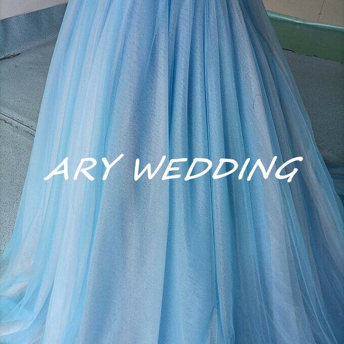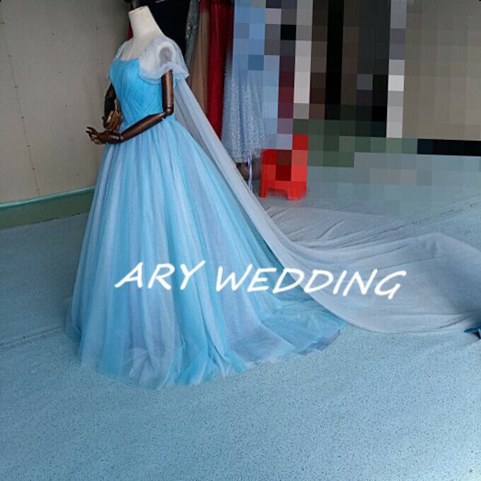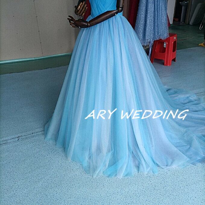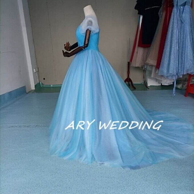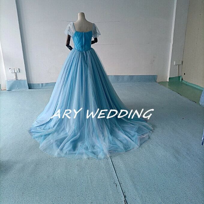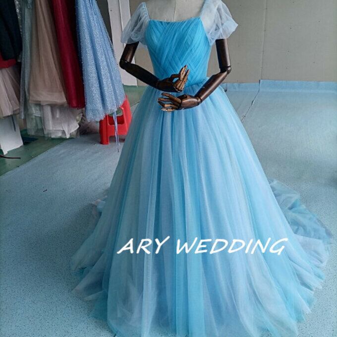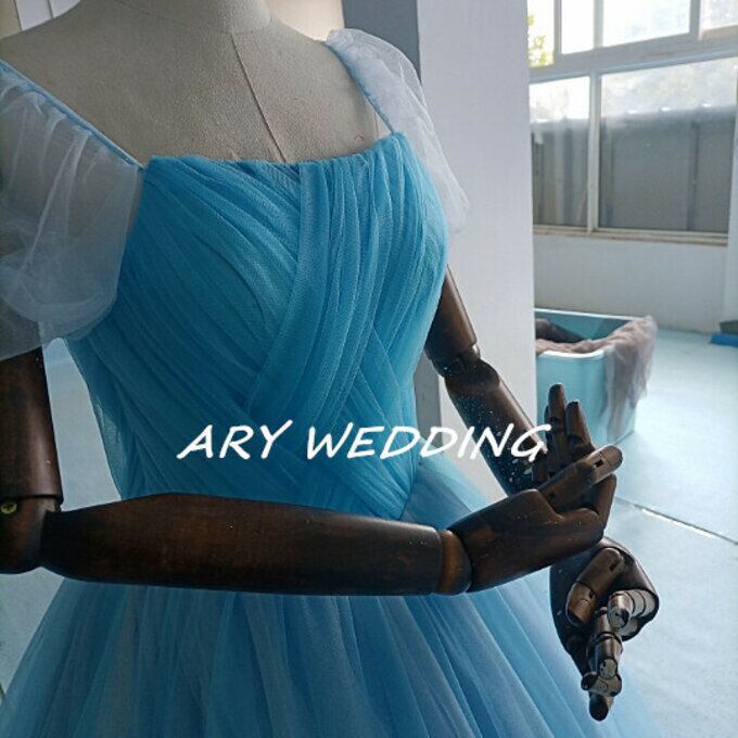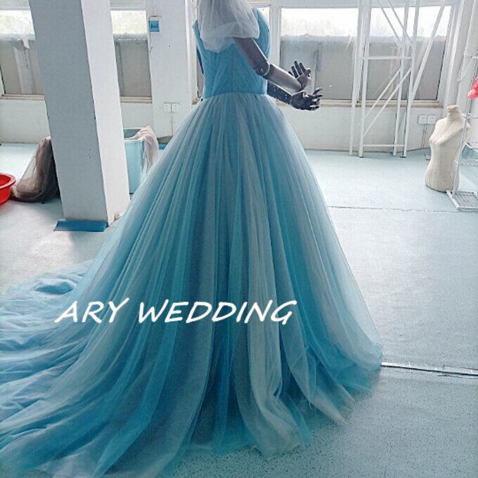 高品質!カラードレス 水色 プリンセスライン パフスリーブ 花嫁/ウェディン グラデーション
