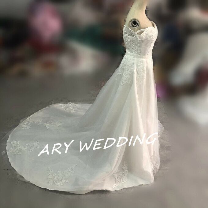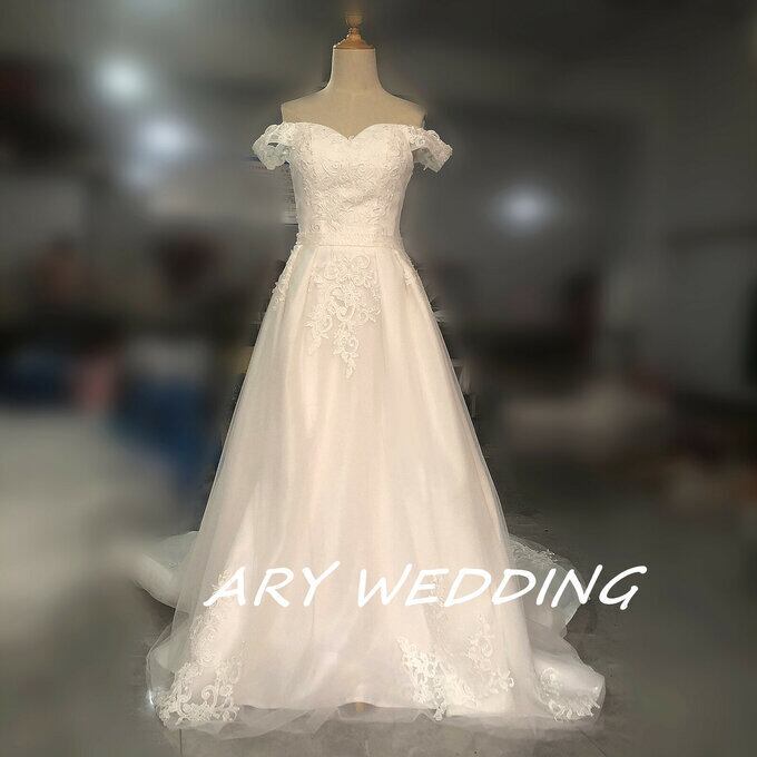 半額セール中!高品質! 豪華! ウェディングドレス オフショルダー プリンセスライン 上品レース 華やかなトレーン