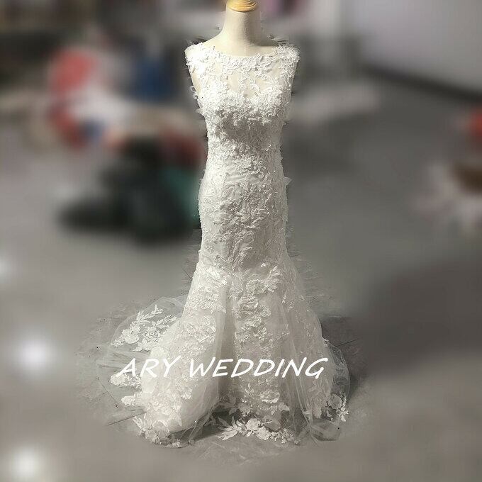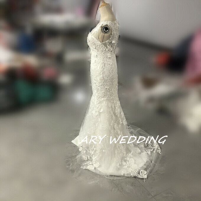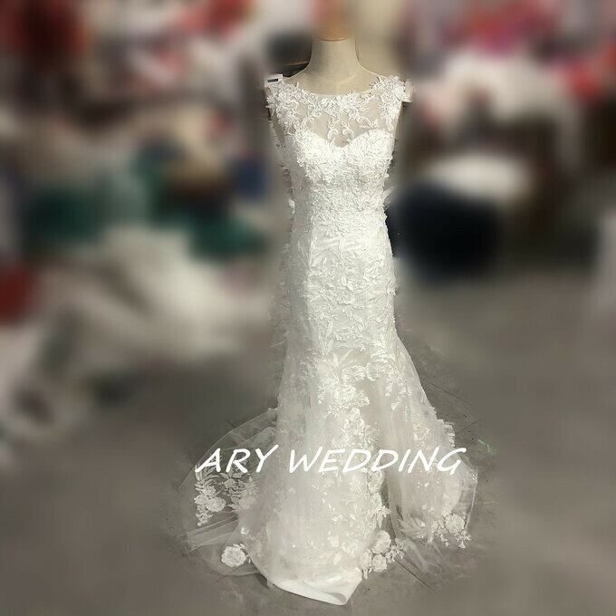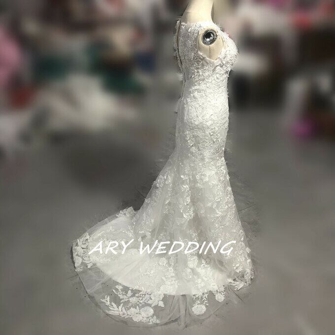 ボートネック レース ウエディングドレス オフホワイト マーメイドライン エレガント 披露宴/挙式