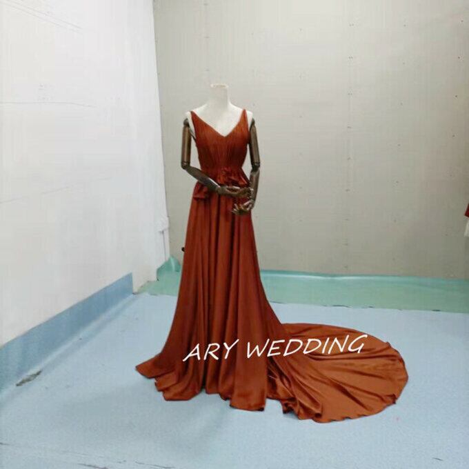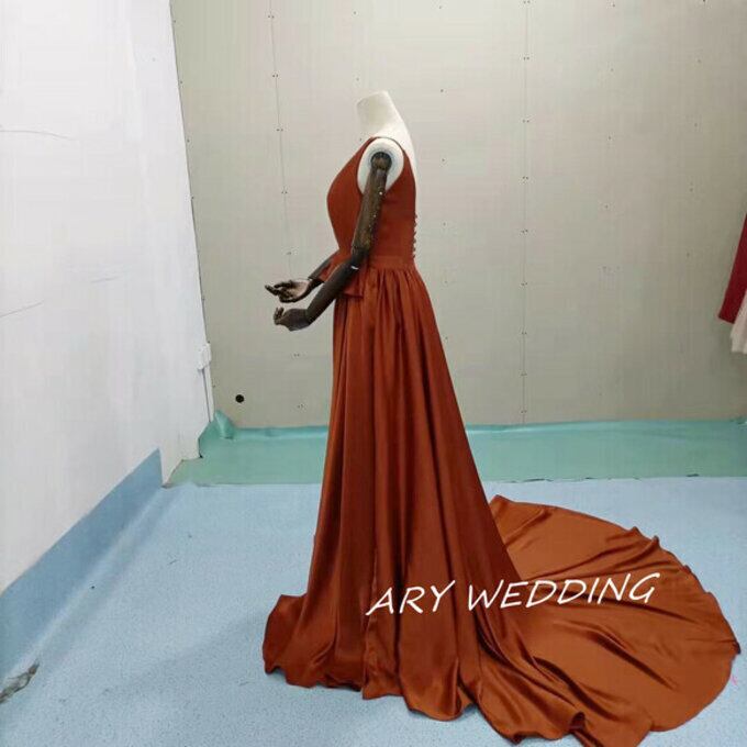 とろみシフォンサテンドレス テラコッタ お呼ばれ/二次会/前撮り カラードレス 色直し パーティードレス