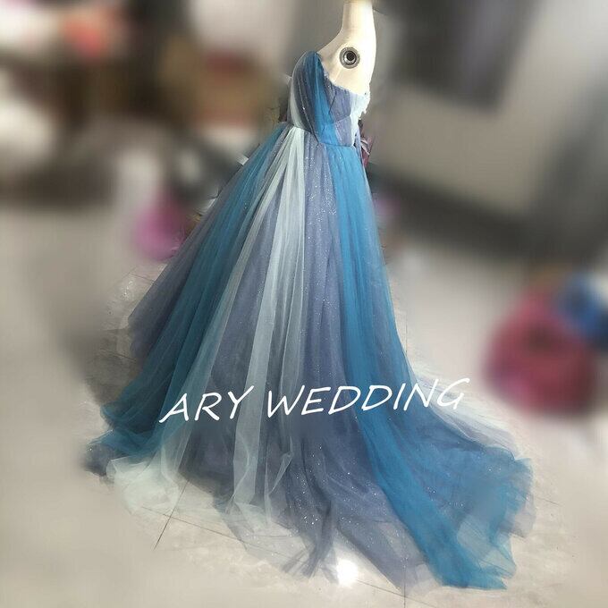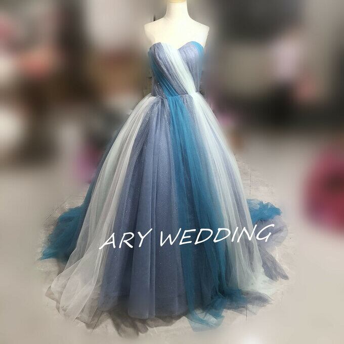 高品質! ベアトップ カラードレス 水色 プリンセスライン 花嫁/ウェディン