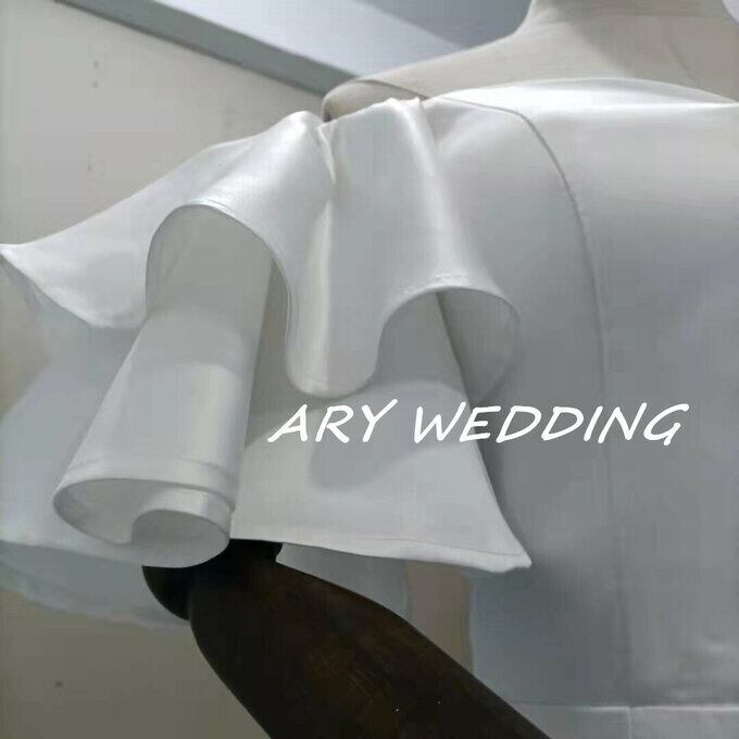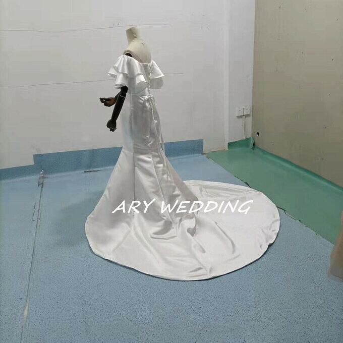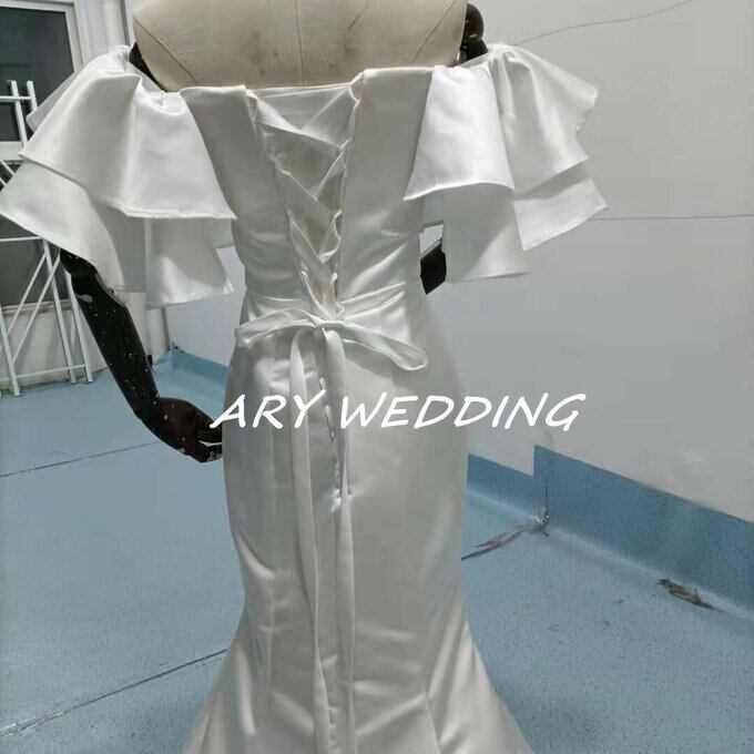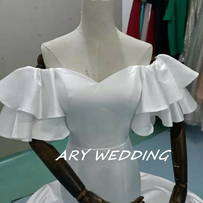 美品!フランス風ウエディングドレス オフホワイト 光沢サテン オフショル 憧れ 結婚式 ドレス
