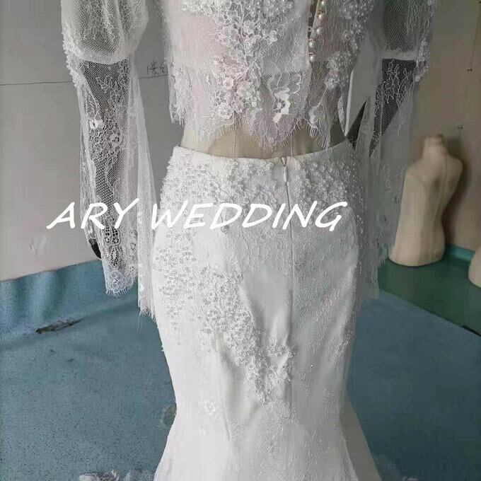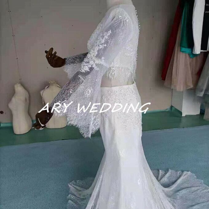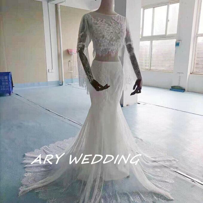 ウエディングドレス ホワイト ソフトチュール レース ツーピース ビーズ/パール ビジュー高品質 花嫁