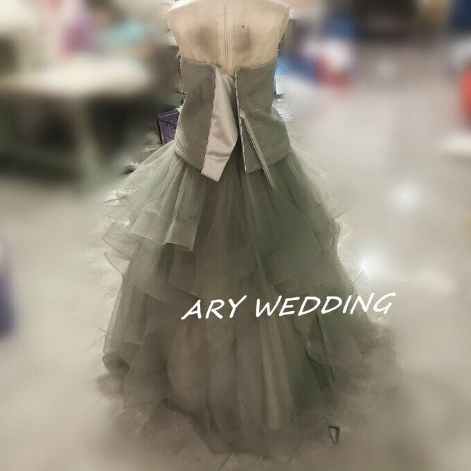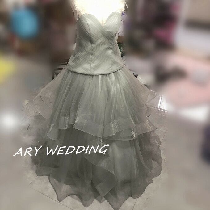 高品質!パーティードレス 薄グレー ベアトップ 上質オーガンジー 柔らかく重ねたチュールスカート