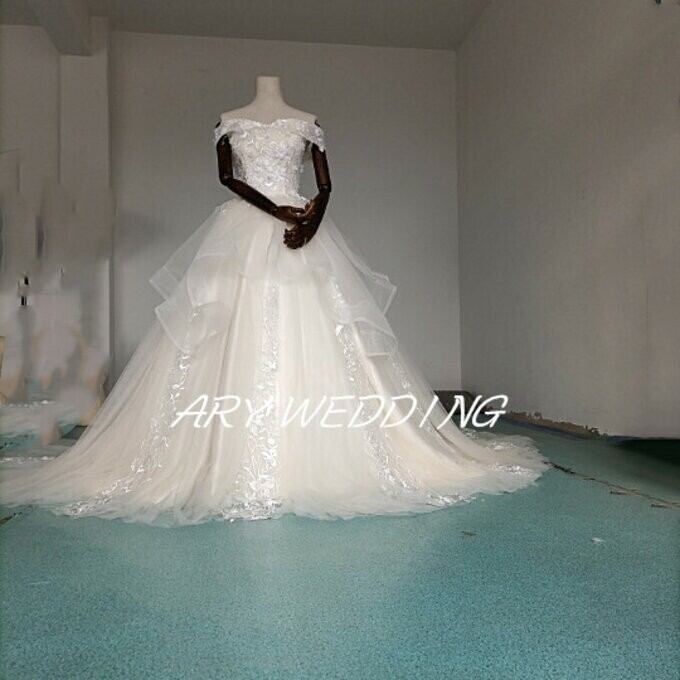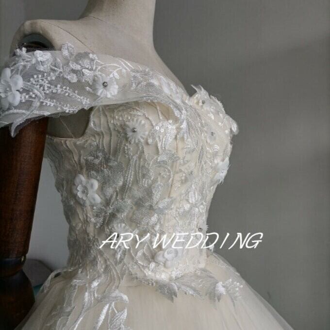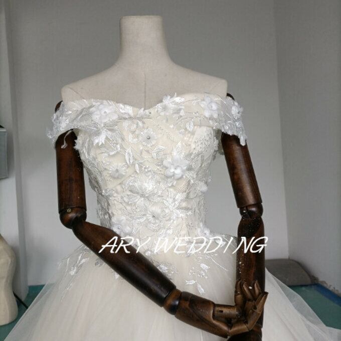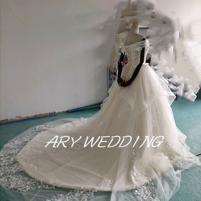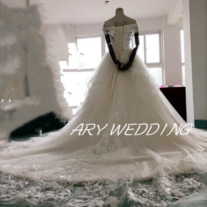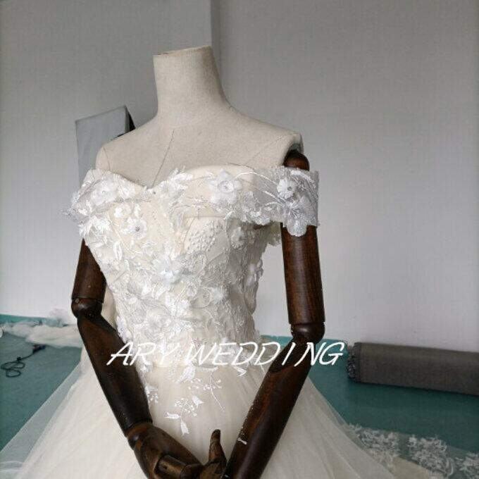 高品質!ウエディングドレス 薄シャンパンの色 オフショル 華やかなトレーン 憧れのドレス エレガント 華やか