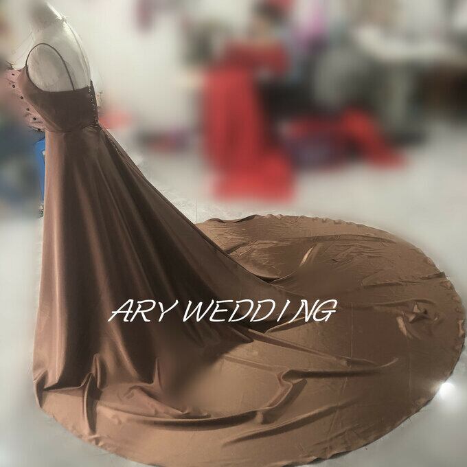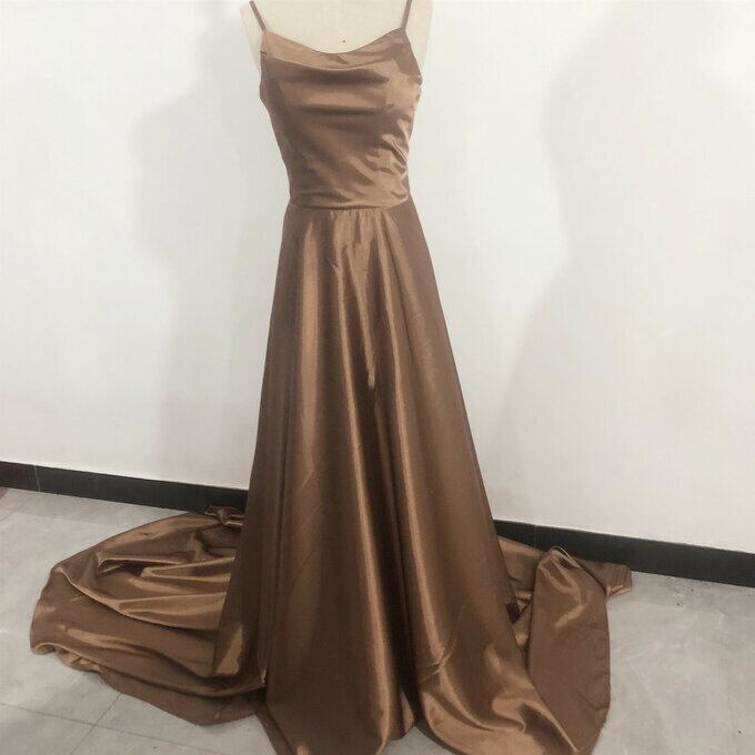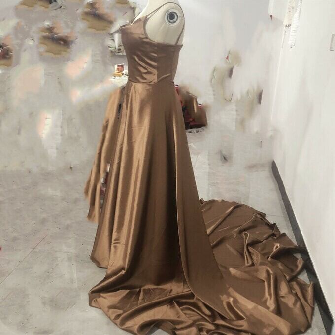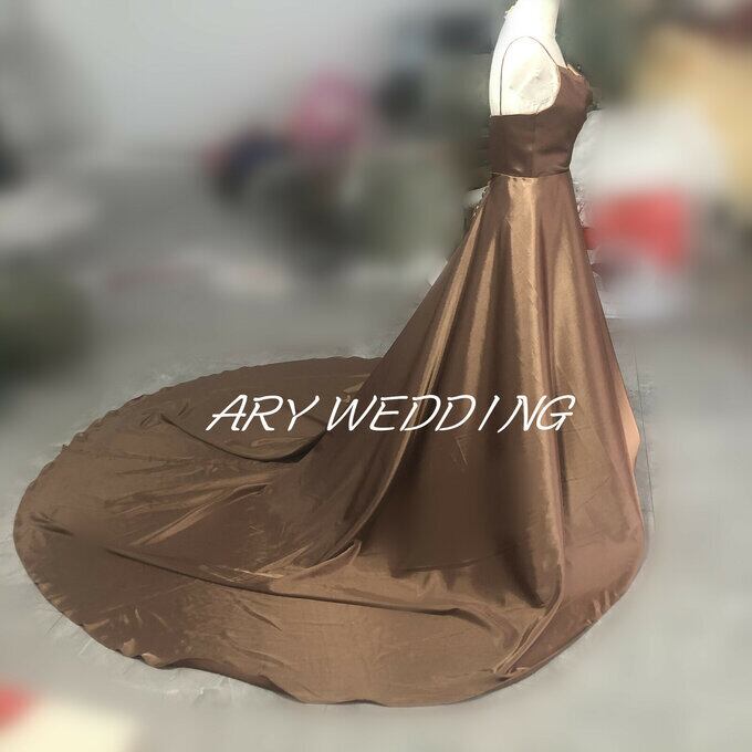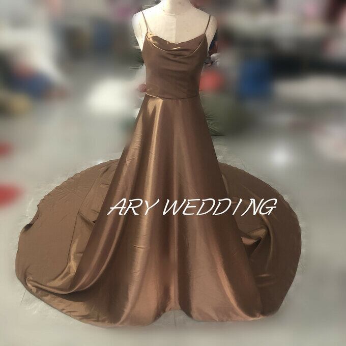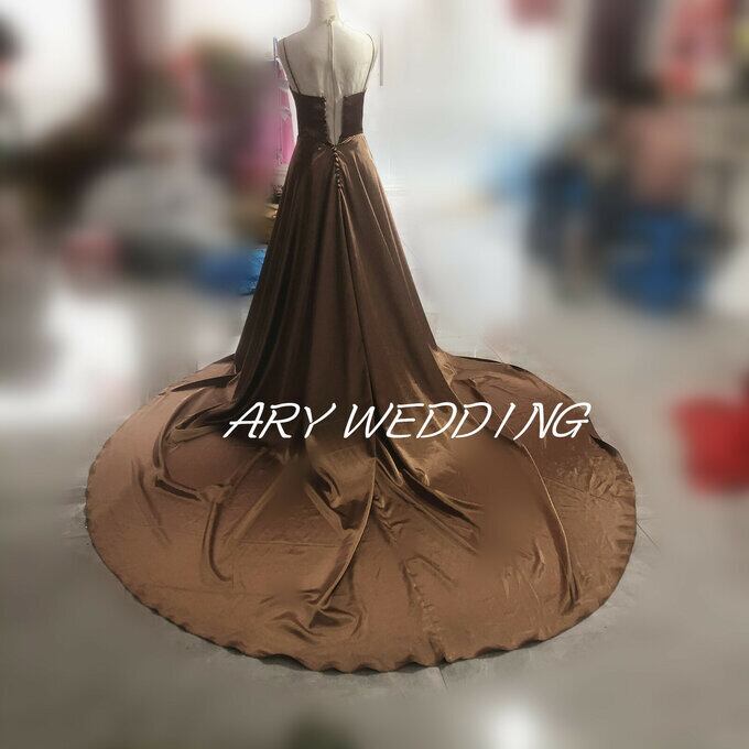 高品質! キャミソール パーティードレス 茶 ロングトレーン 前撮り ロングドレス