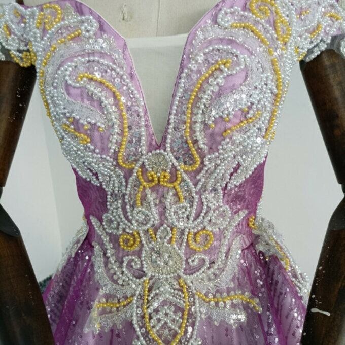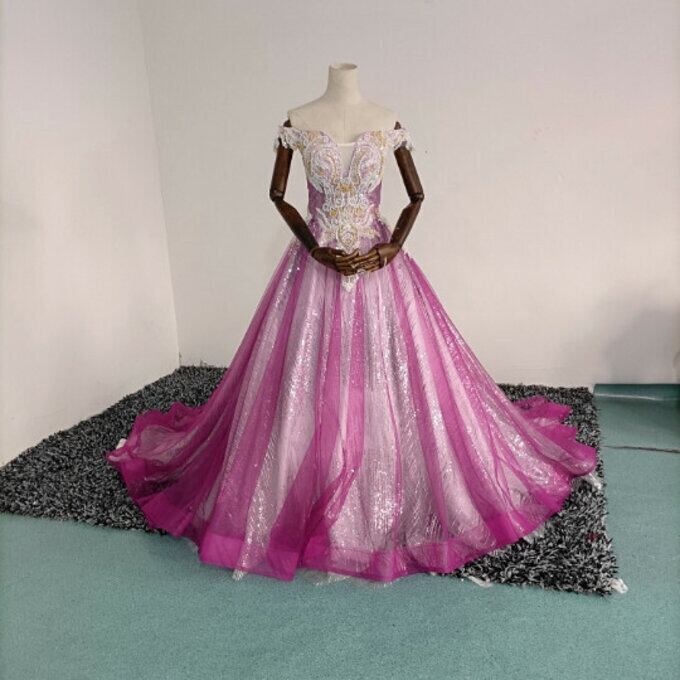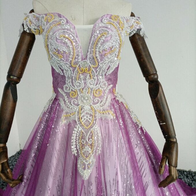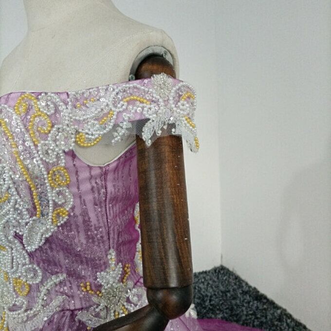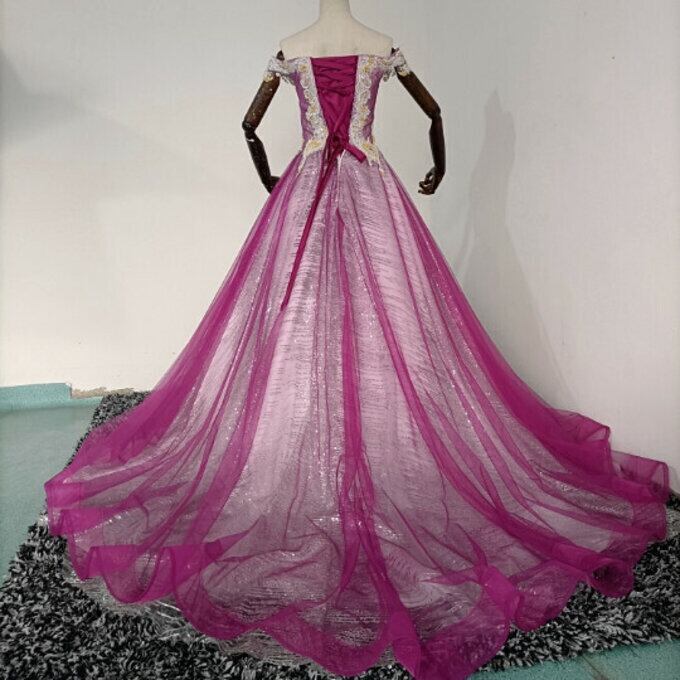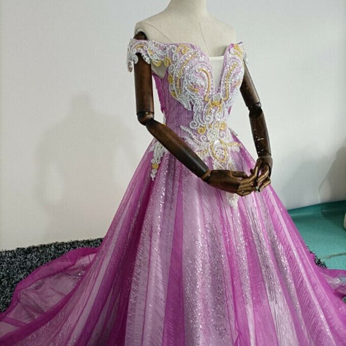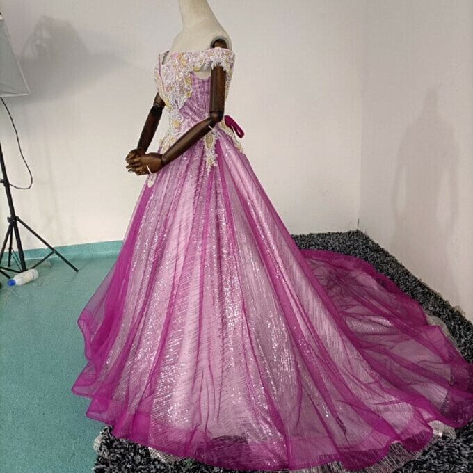 オフショル カラードレス 紫 プリンセスライン キラキラグリッターチュール 憧れのドレス 結婚式/披露宴/挙式