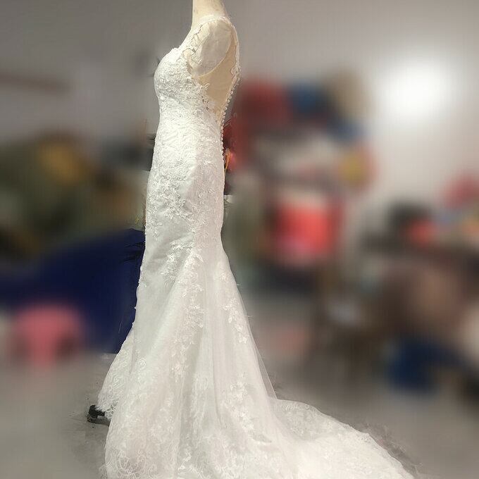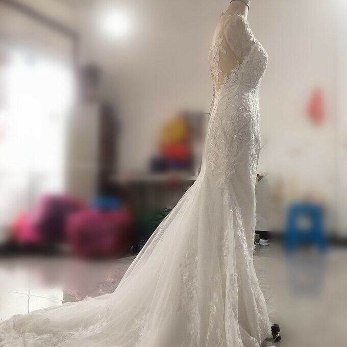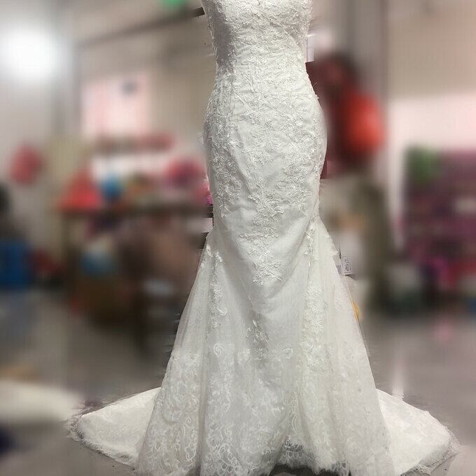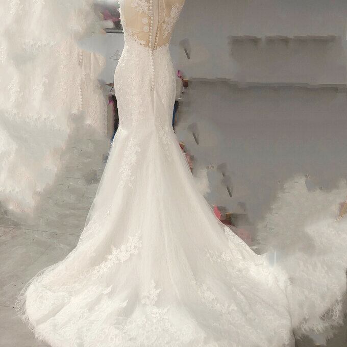 高品質!総レース ウエディングドレス キャミソール 華やかなトレーン マーメ