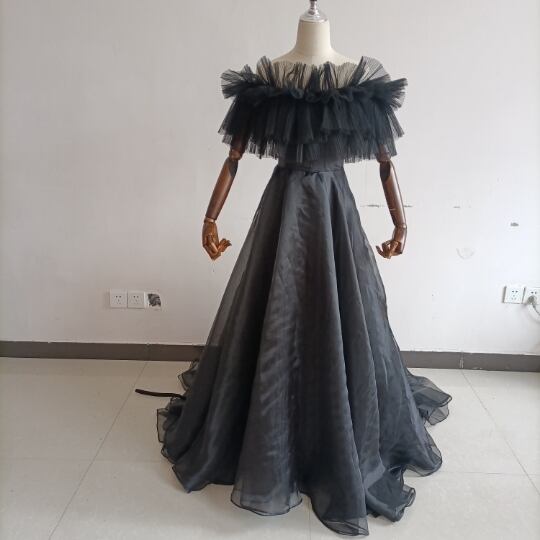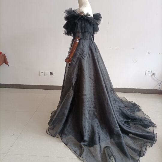 送料無料!豪華! カラードレス 黑 オフショルダー 人気上昇 2次会 花嫁 ロングトレーン