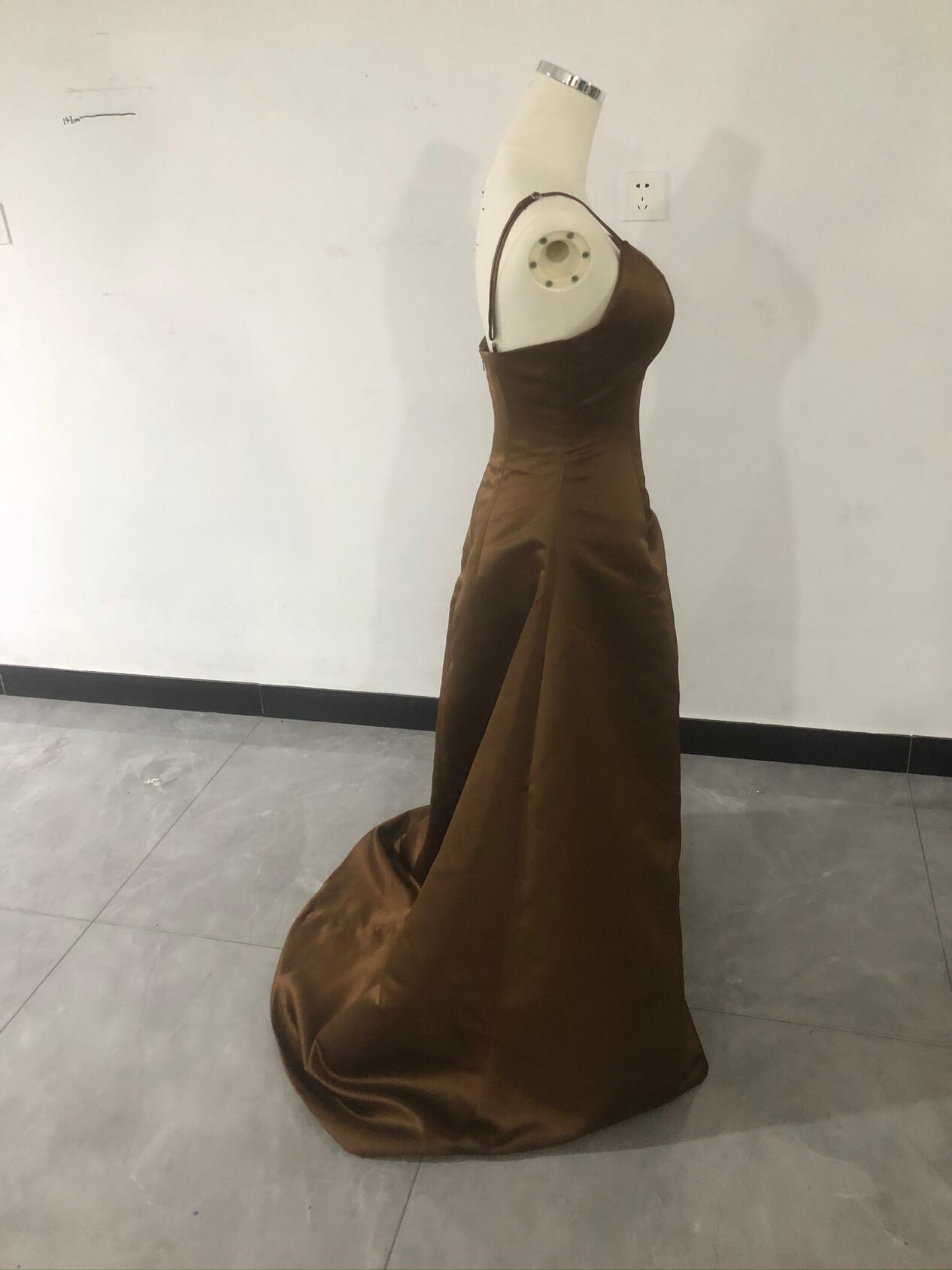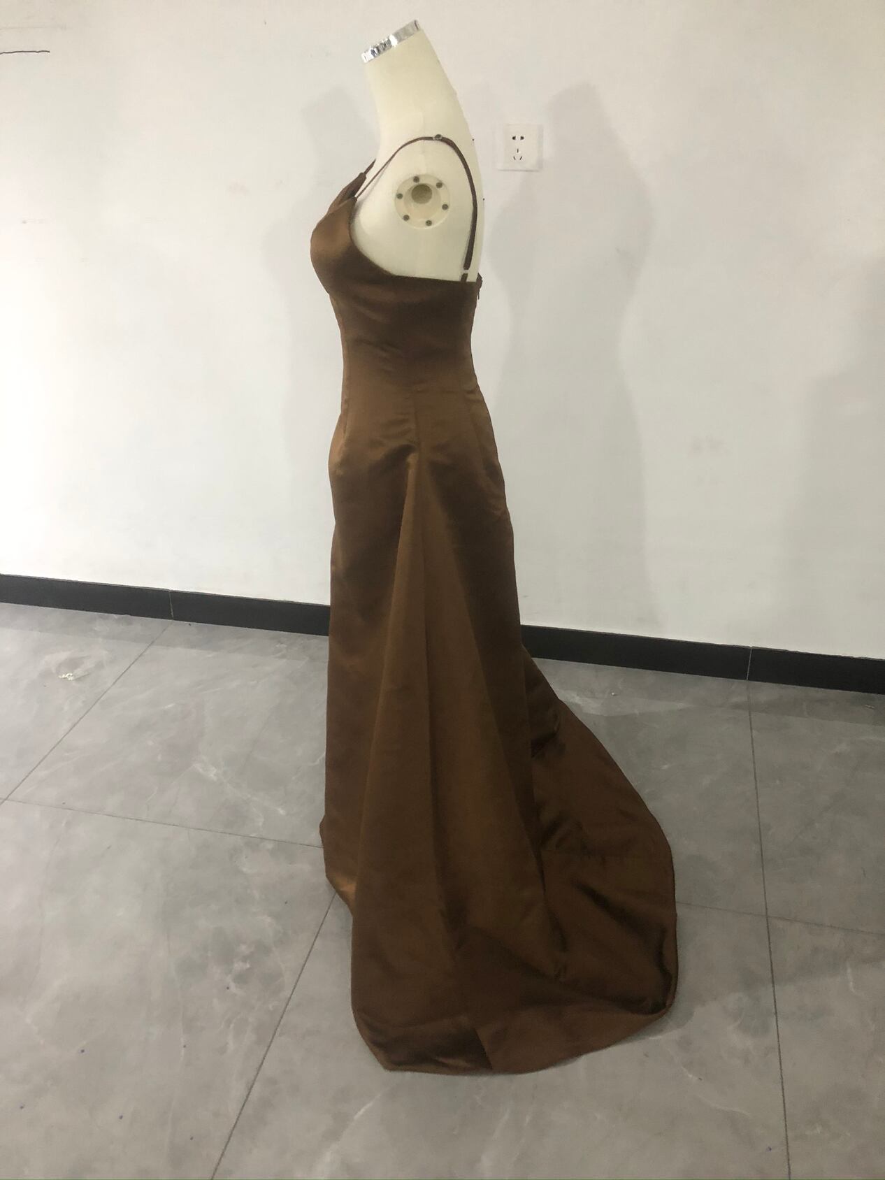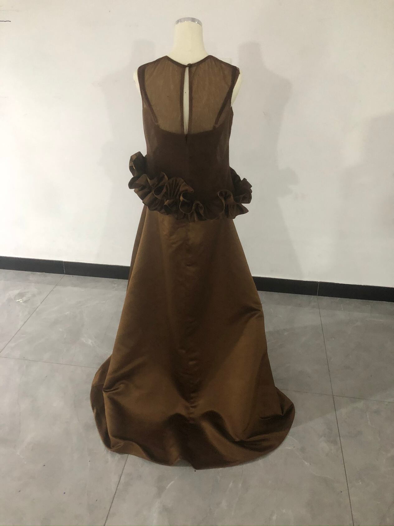 上品! パーティードレス コーヒーの色 エレガント 細見えシル カラードレス +フェミニンなフレームレースの袖トップ