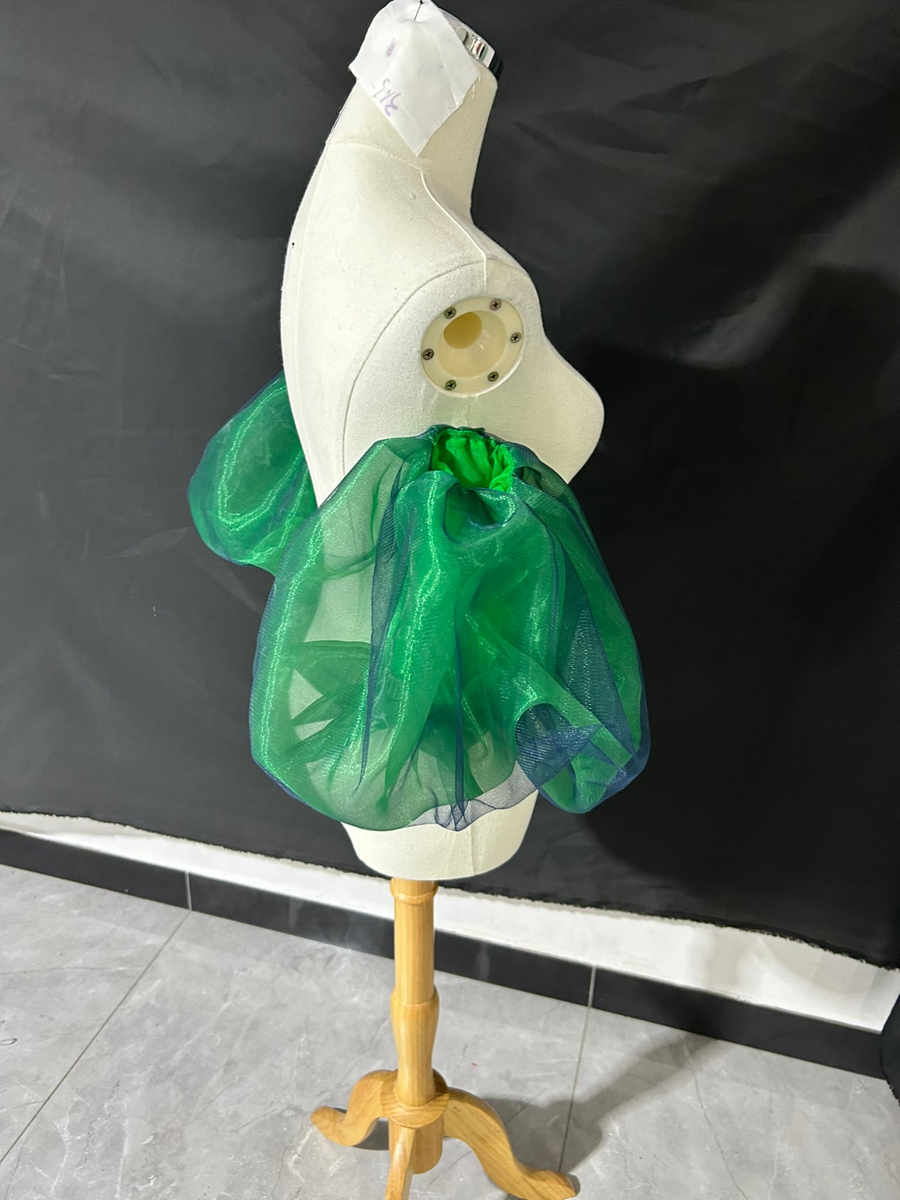 上品!グリーン 取り外し袖 ショルダーの付け袖 パフスリーブ オーダー可能 二の腕を隠せるお袖