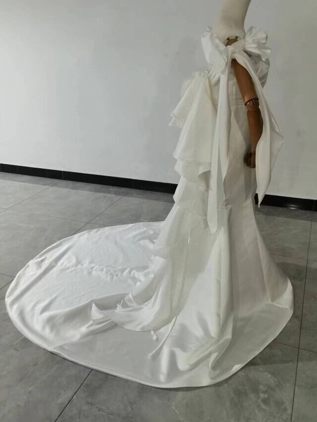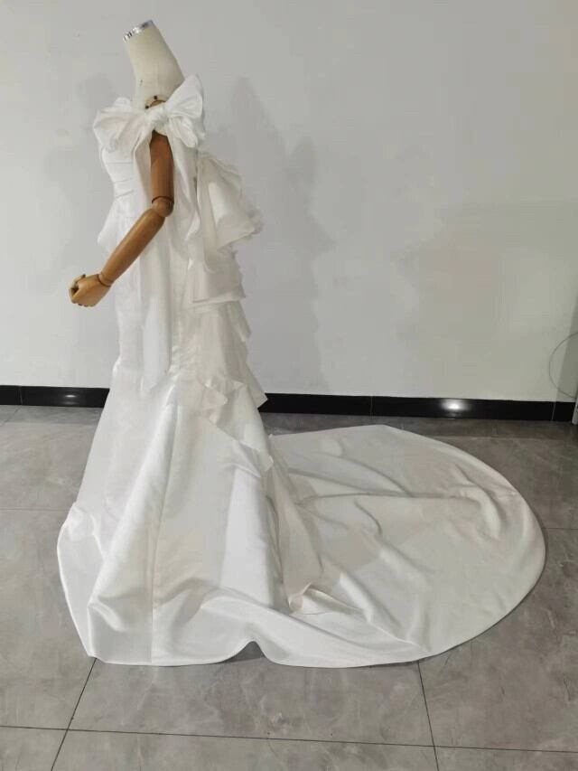 上品! ウェディングドレス ホワイト ふっくら柔らかなバックリボン 華やかなトレーン花嫁/結婚
