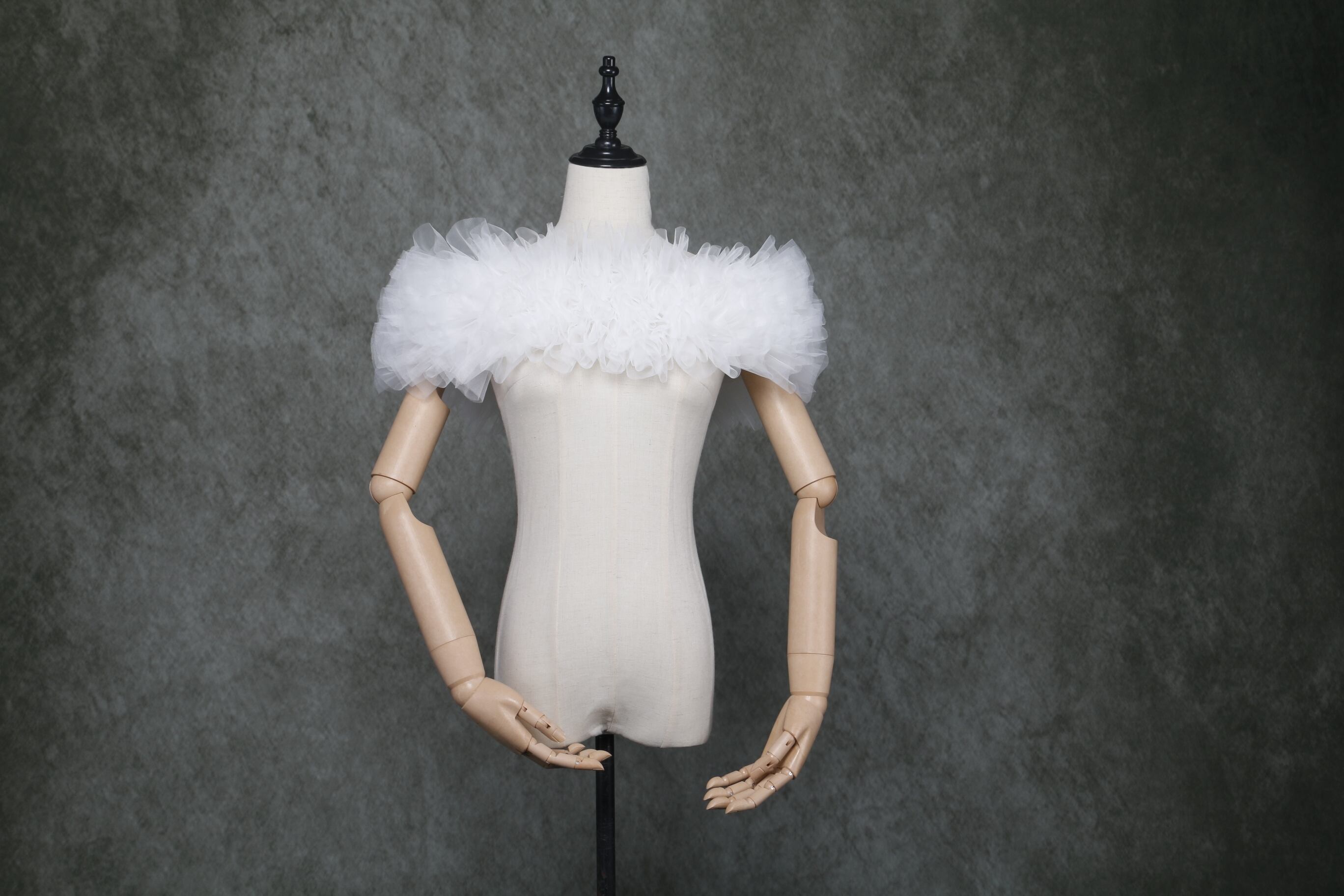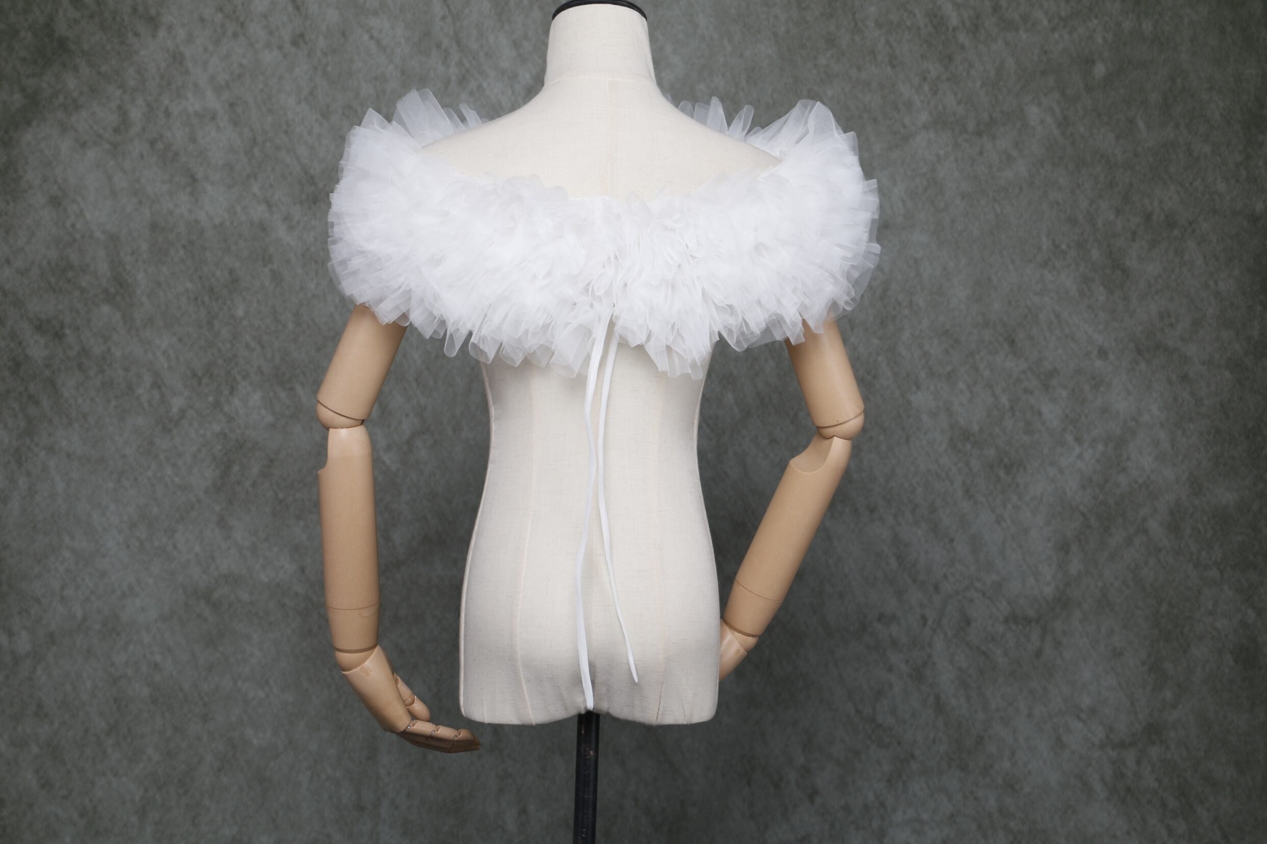 大好評中!ホワイト ポンチョ ソフトチュール ラッフルフリル  取り外しオフショルダー