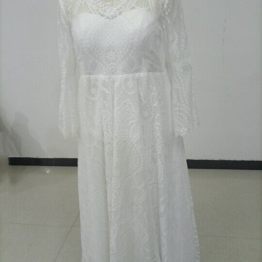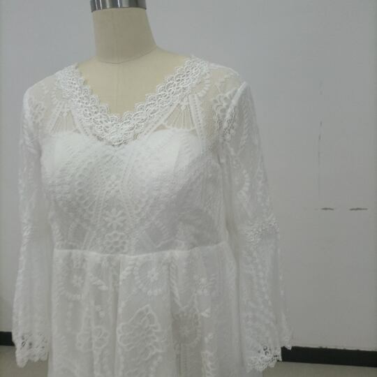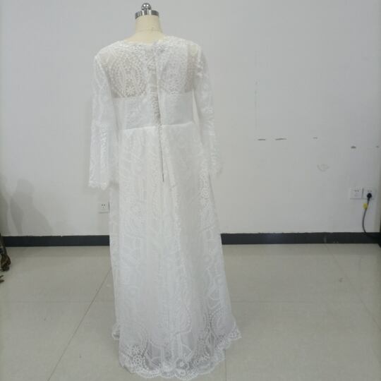 上品!マタニティウエディングドレス 総レース上品透け袖 ロングトレーン 花嫁/ /二次会/