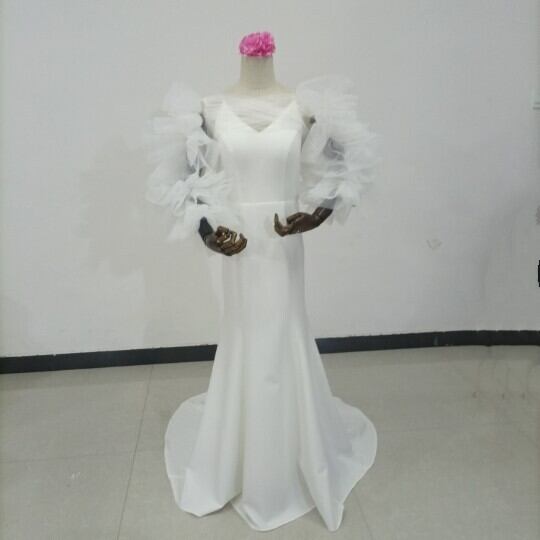 送料無料! 抜群のおしゃれ見えウェディングドレス ホワイト 人気上昇!キャミソール ショール パール 結婚式 花嫁