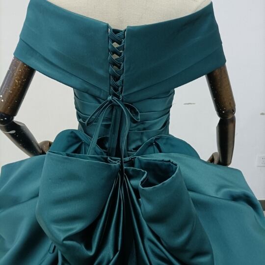 送料無料! 人気上昇!カラードレス パーティードレス 取り外しオフショルダー  美しいバックリボン /結婚