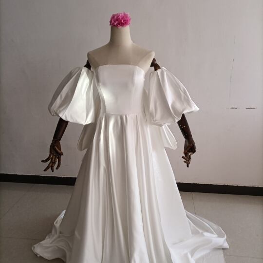 上品! ホワイト ウェディングドレス 華やかなトレーン花嫁/結婚式/披露宴