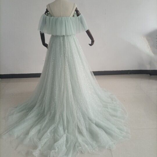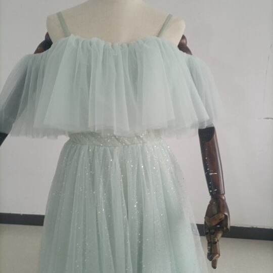 送料無料! 抜群のおしゃれ見え キラキラチュールレレ カラードレス 取り外しオフショルダー 花嫁/結婚式