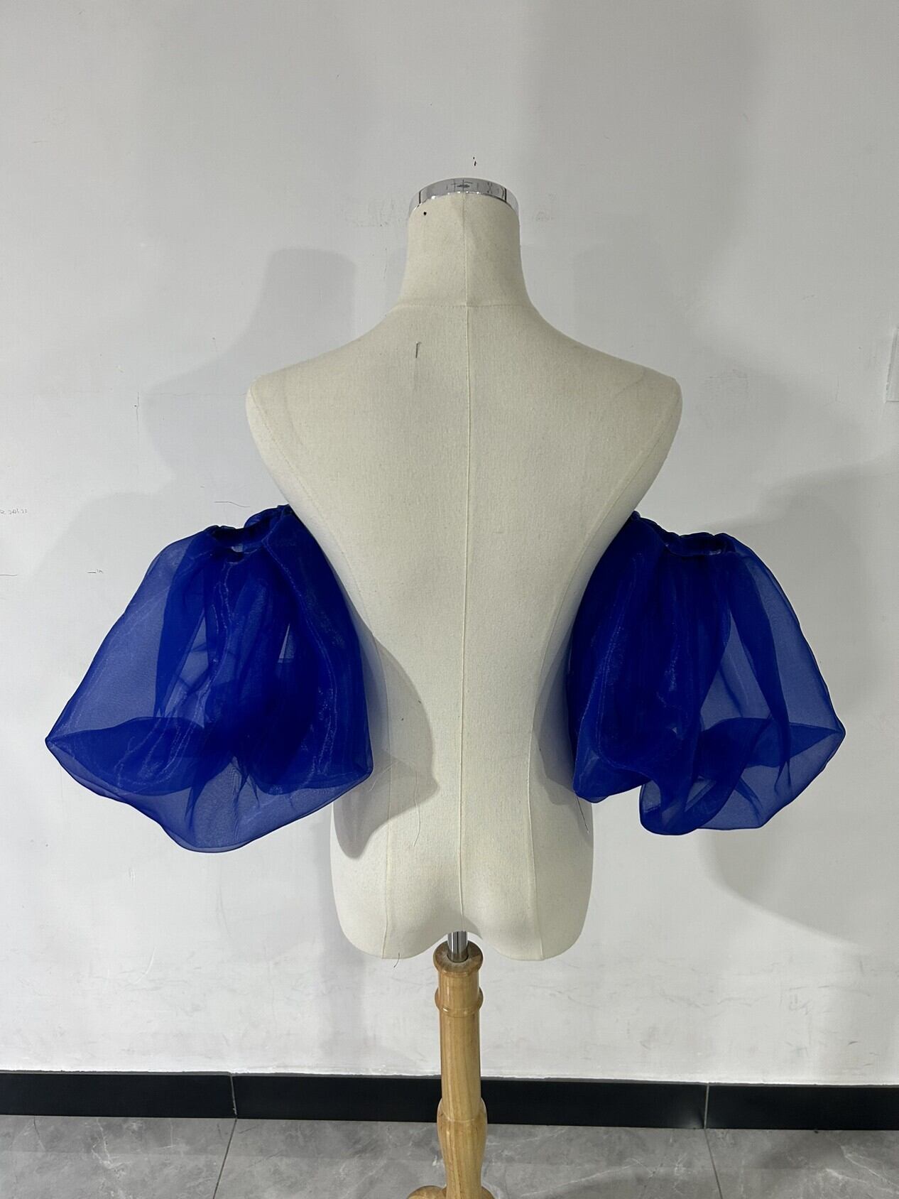 送料無料! ブルー 取り外し袖 ショルダーの付け袖 パフスリーブ オーダー可能 二の腕を隠ブルー 取り外し袖 シせるお袖