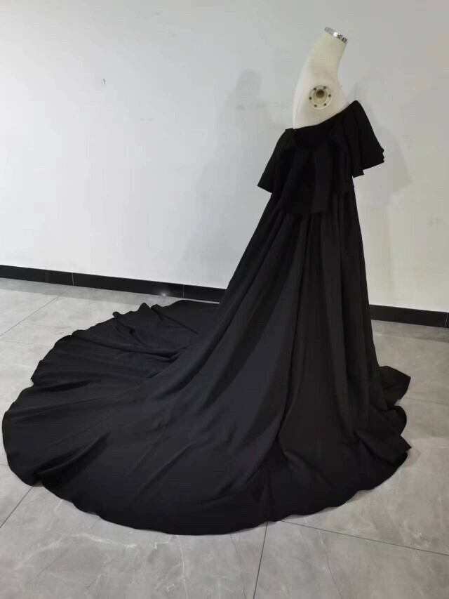 送料無料!人気上昇!カラードレス エンパイアライン パーティードレス 黒 取り外しオフショルダー /結婚式/披露宴