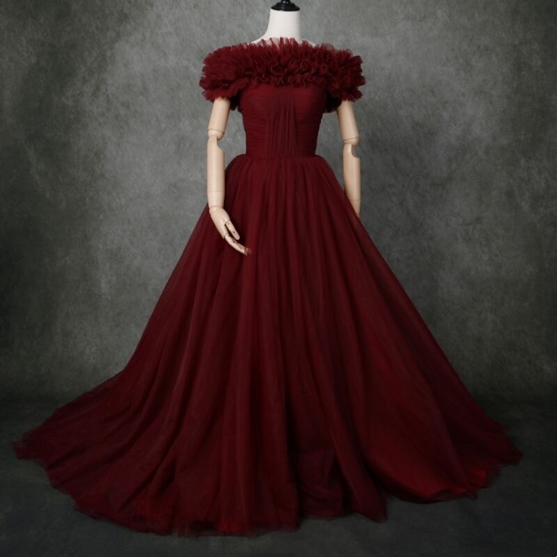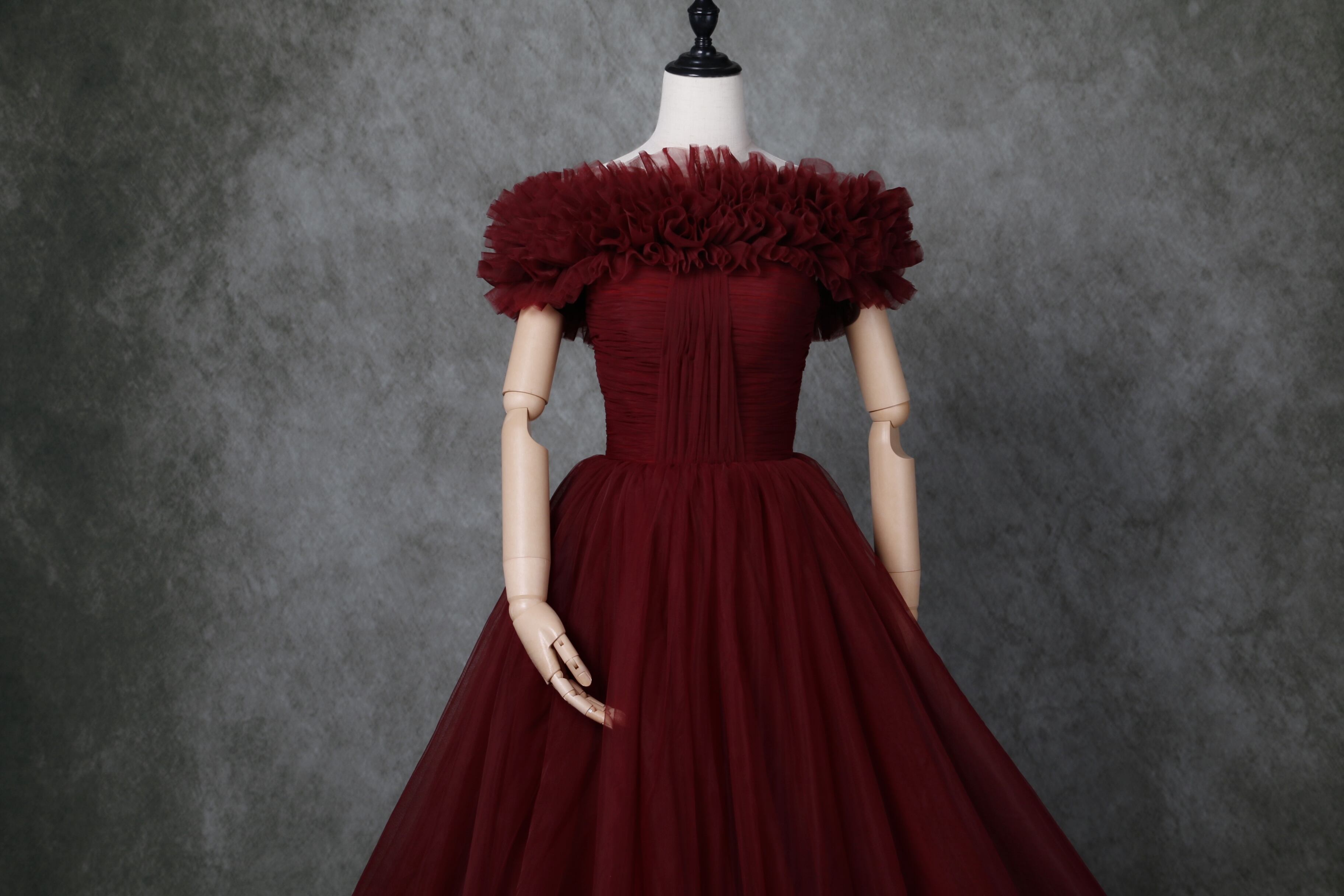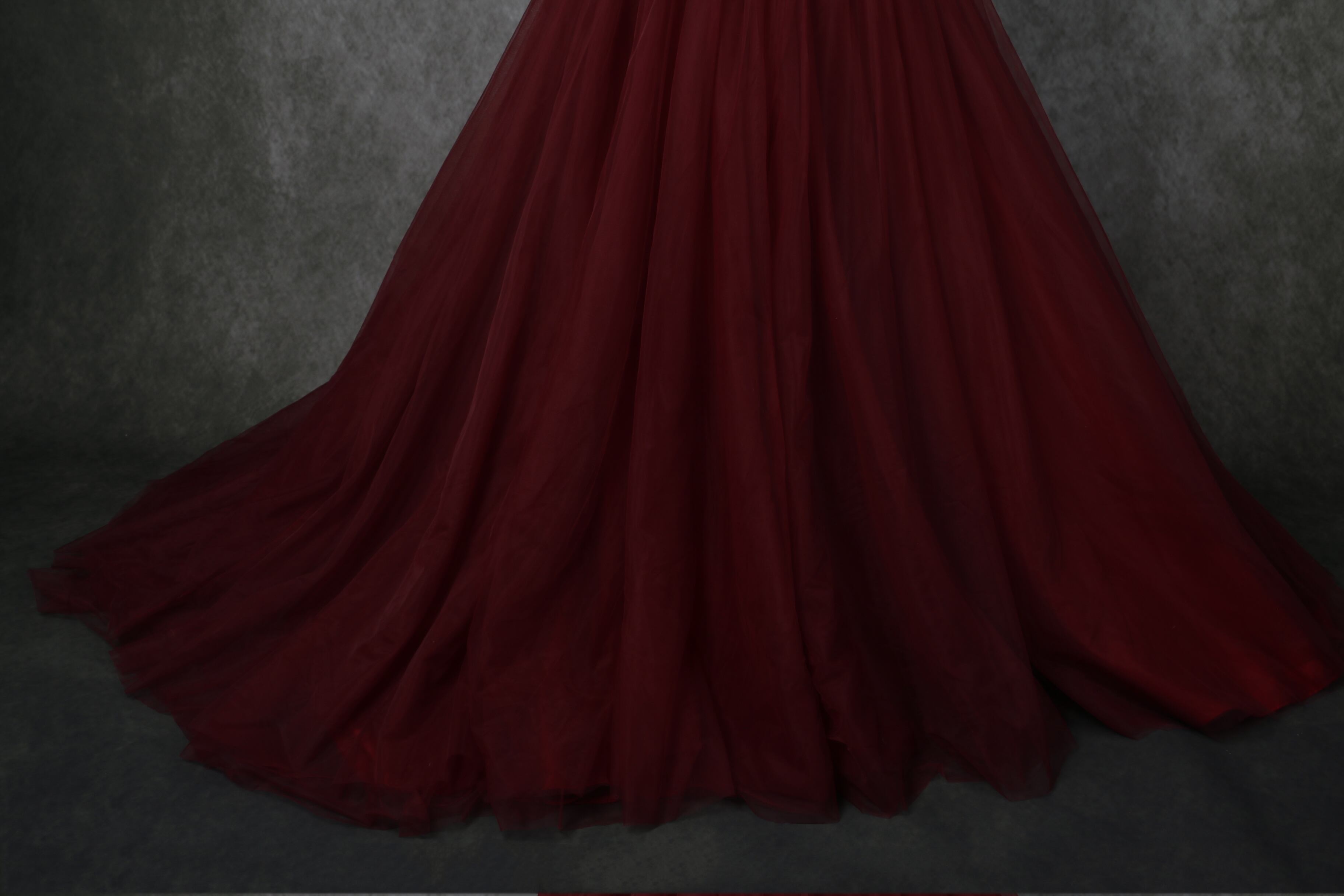 送料無料!高品質!ワインレッド カラードレストレーン 取り外しオフショルダー サッシュベル/結婚式/披露宴