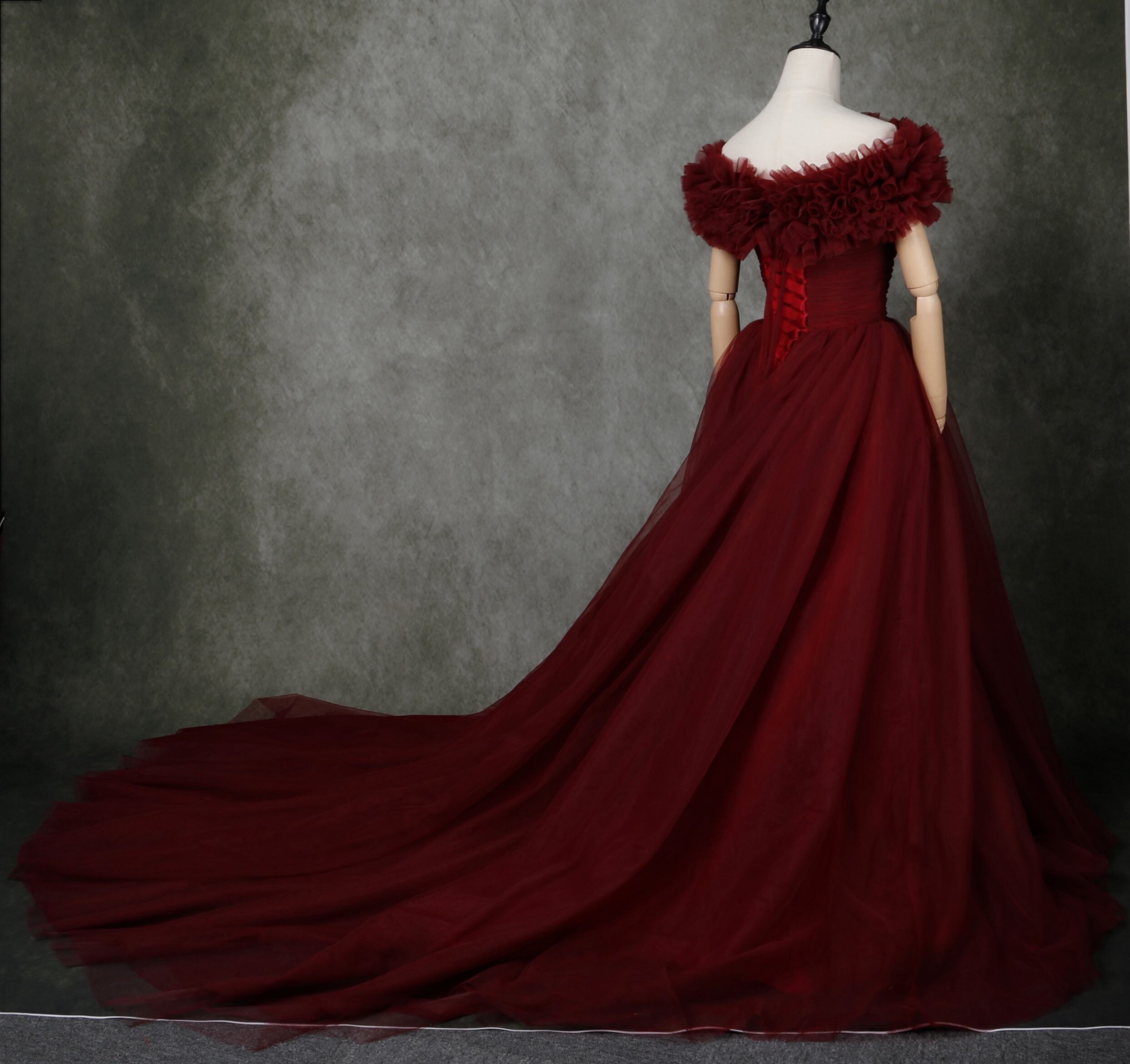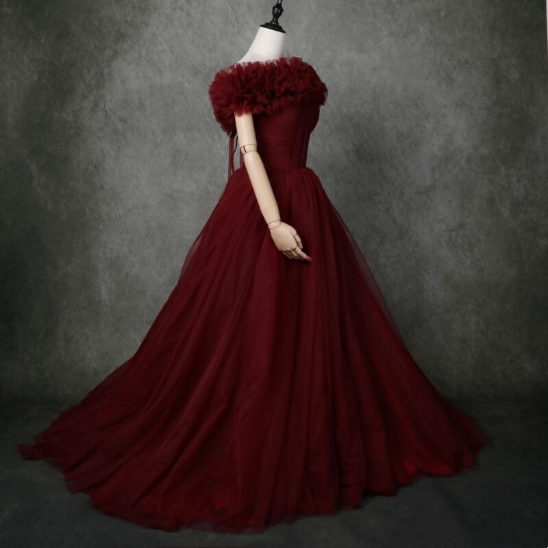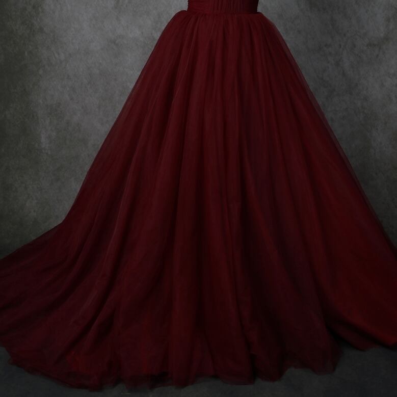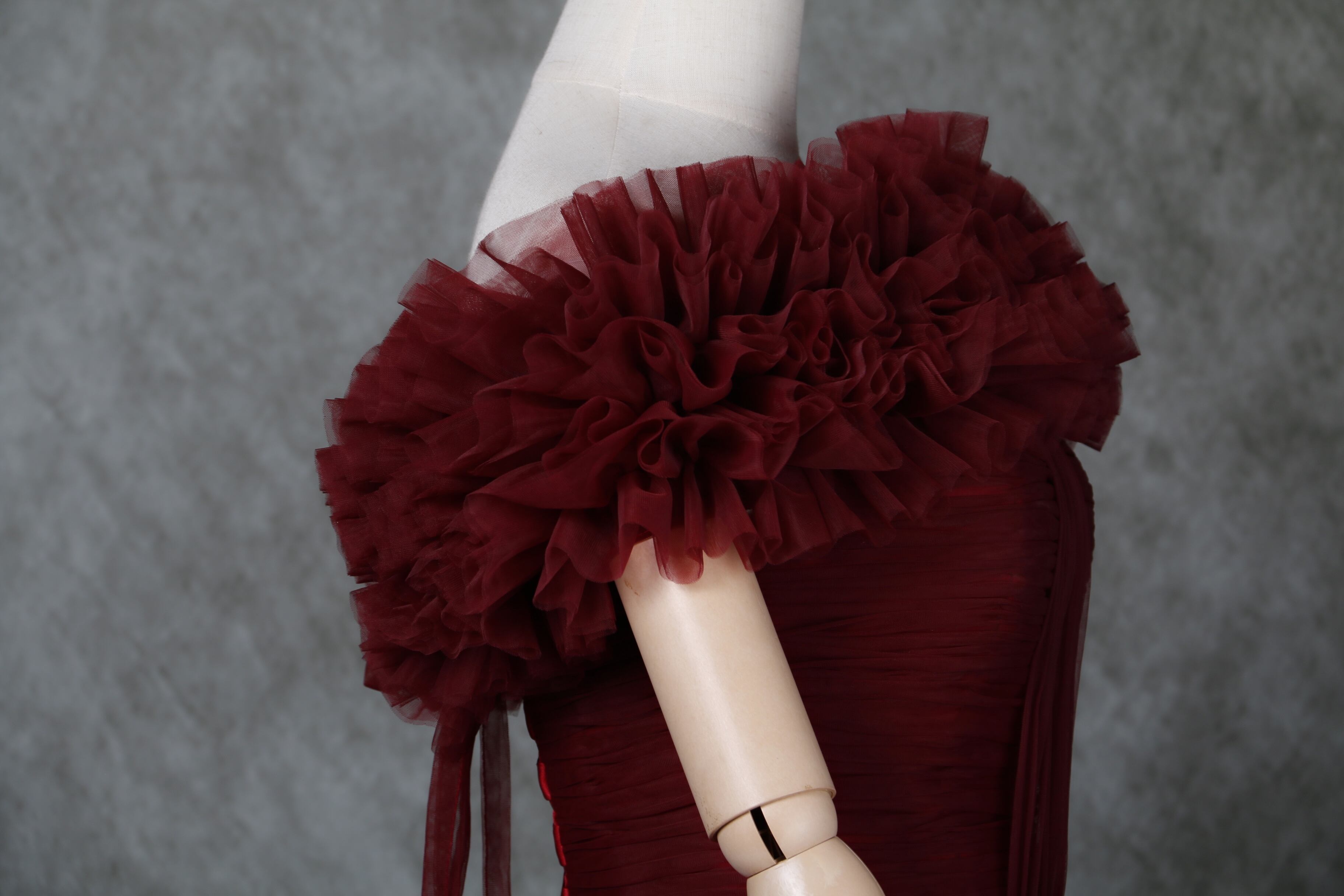 送料無料!高品質!ワインレッド カラードレストレーン 取り外しオフショルダー サッシュベル/結婚式/披露宴