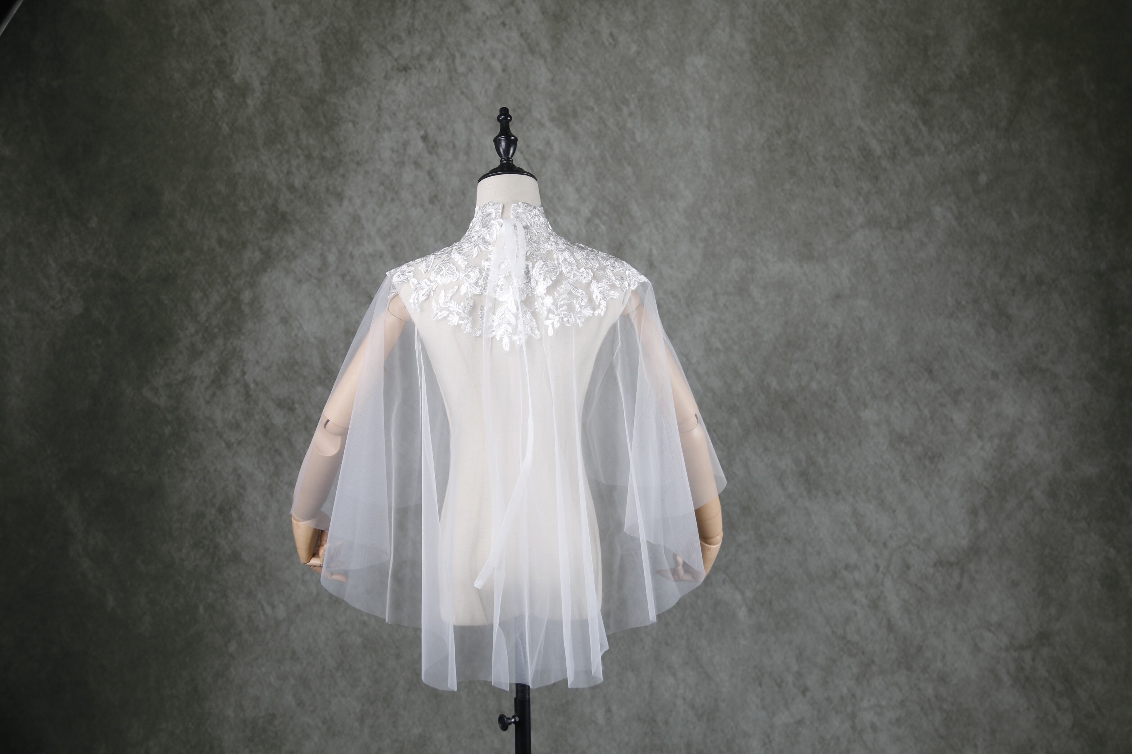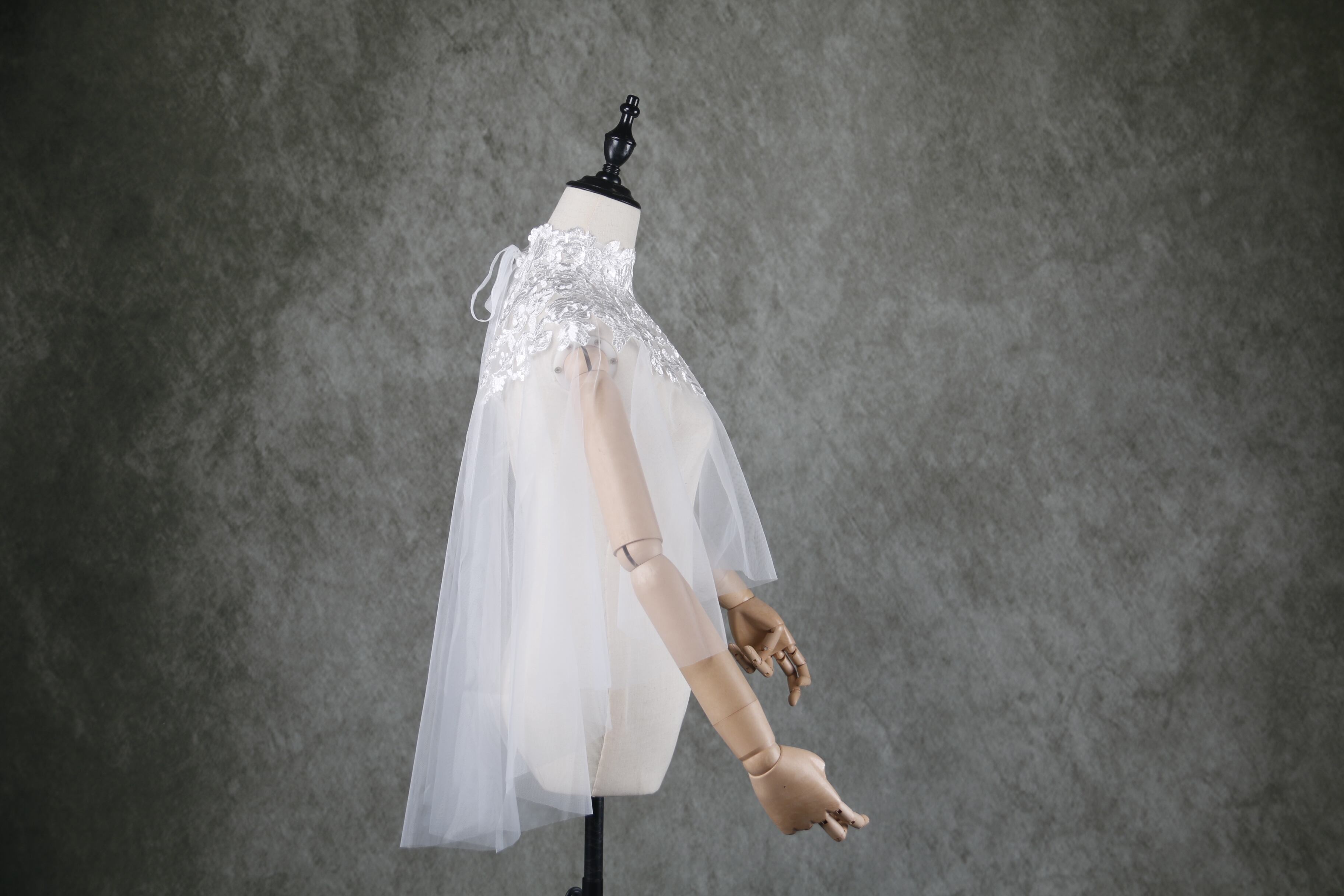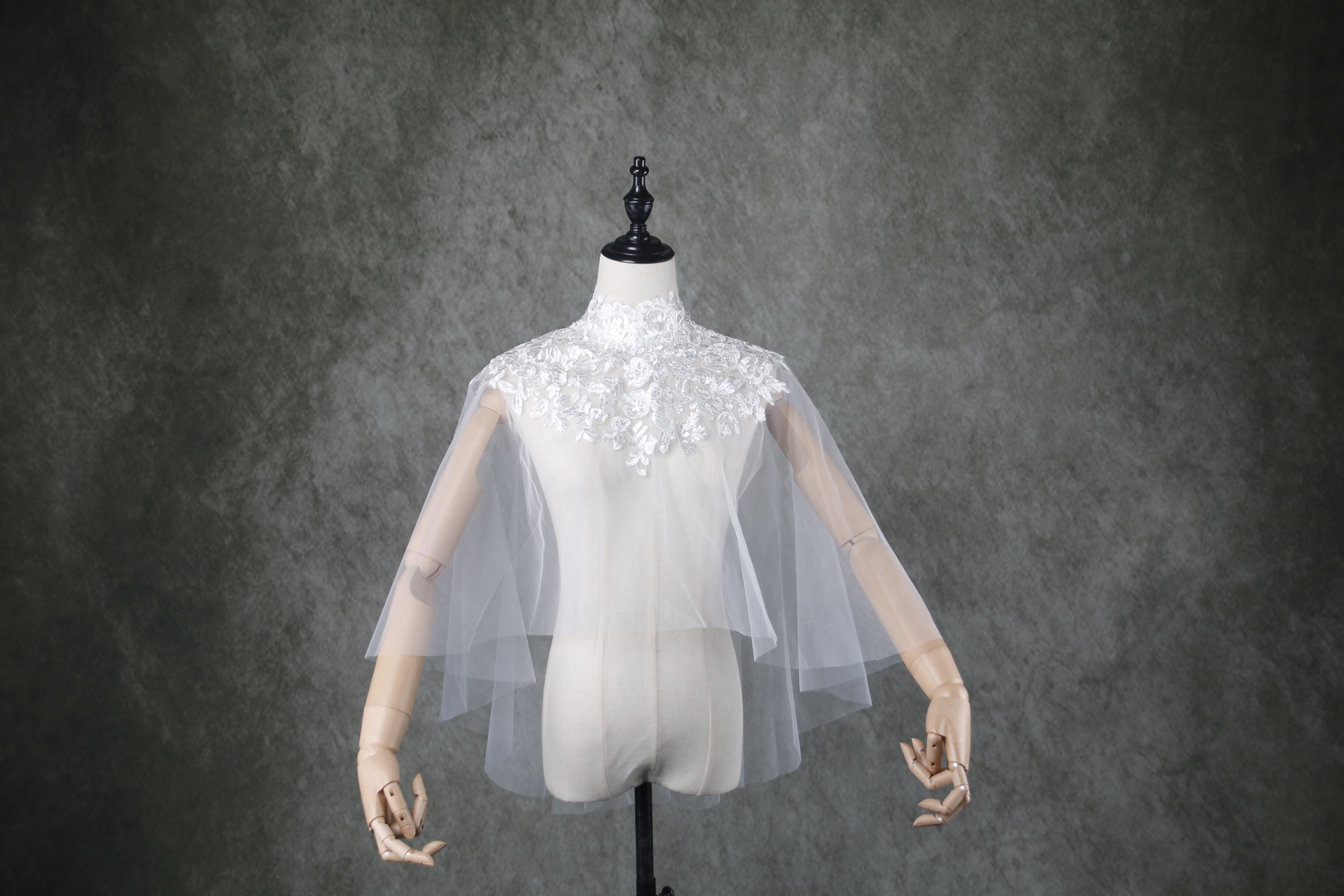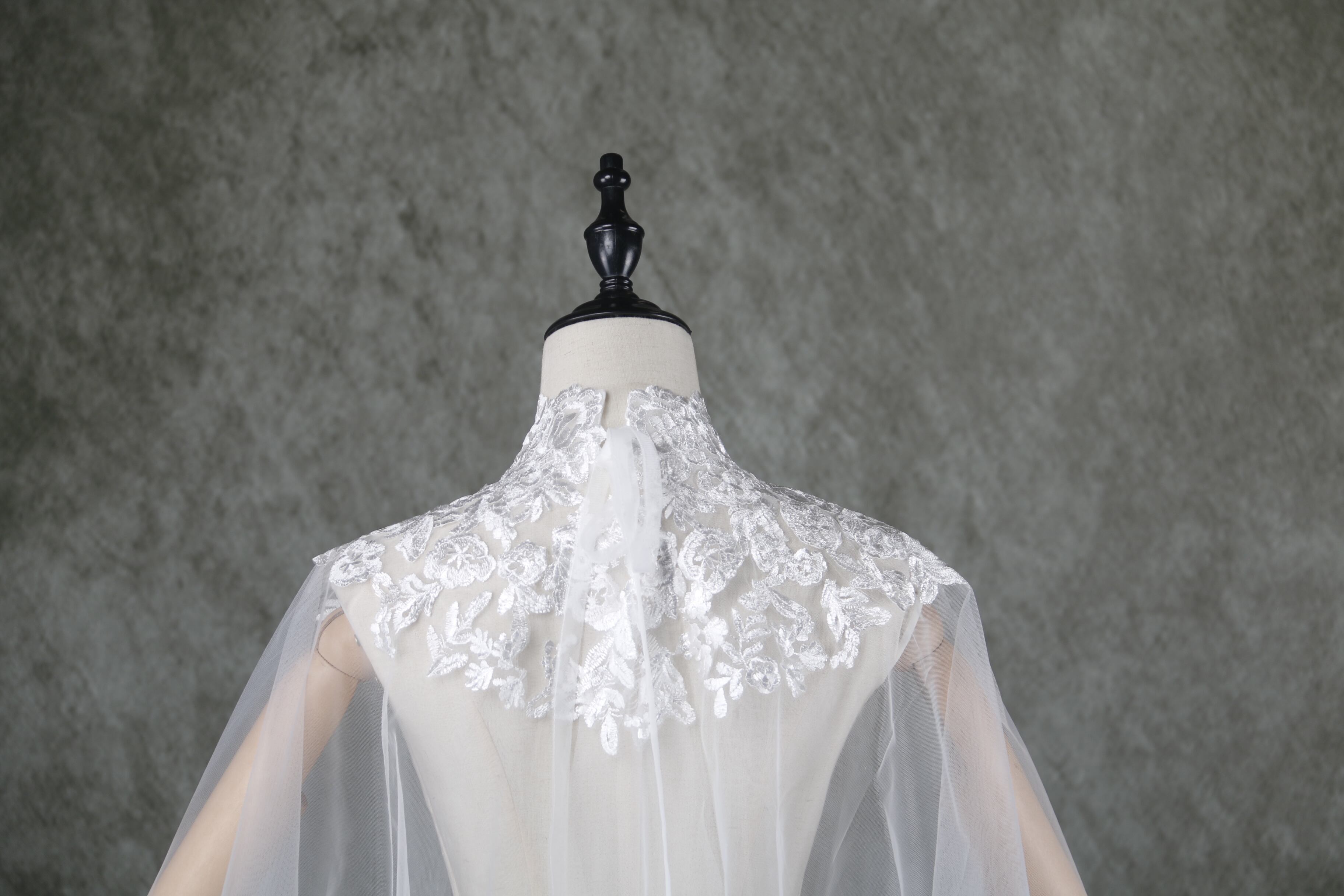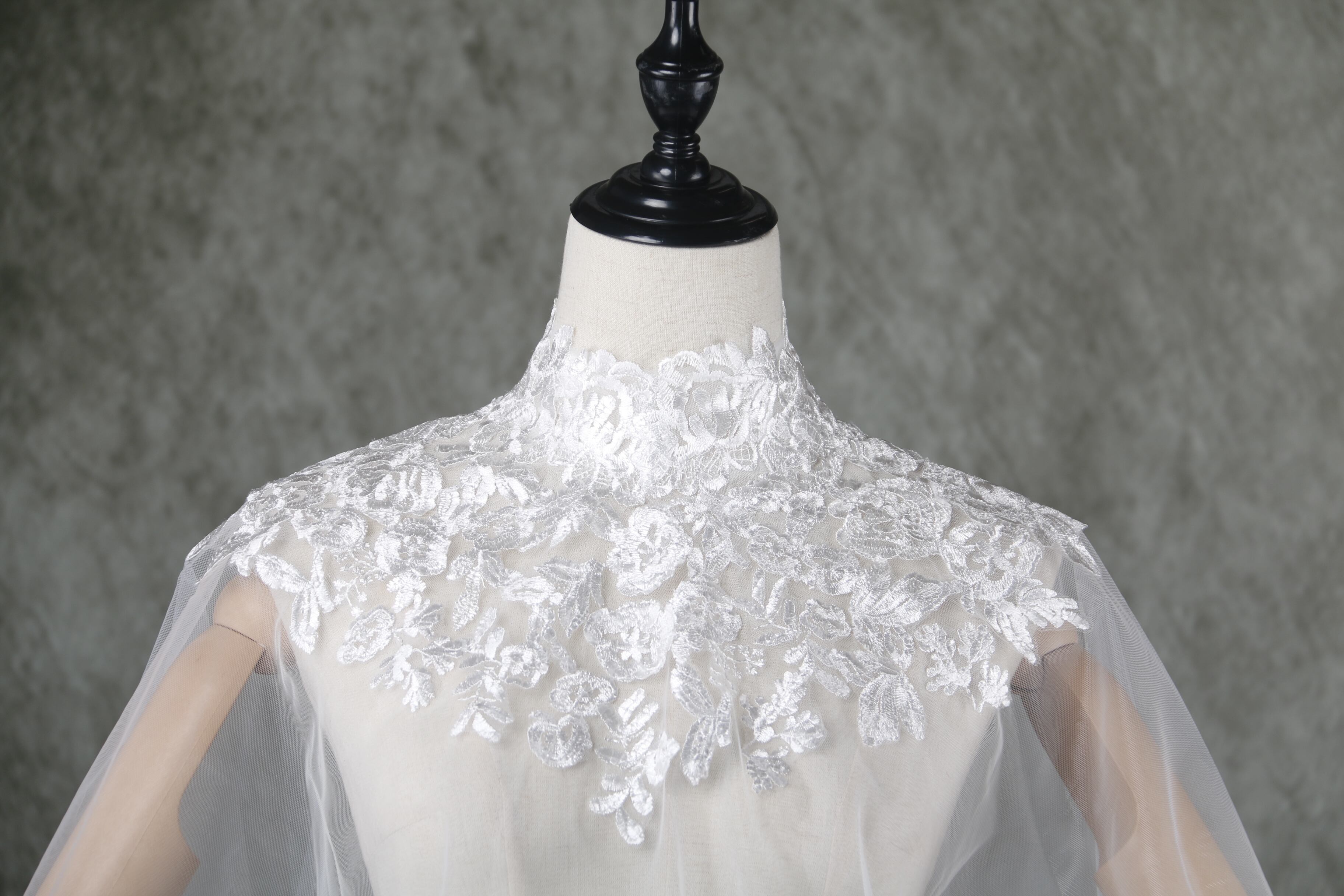 エレガント トップス ケープ風ボレロ ウエディングドレス 咲き誇る透け花レース くるみボタン