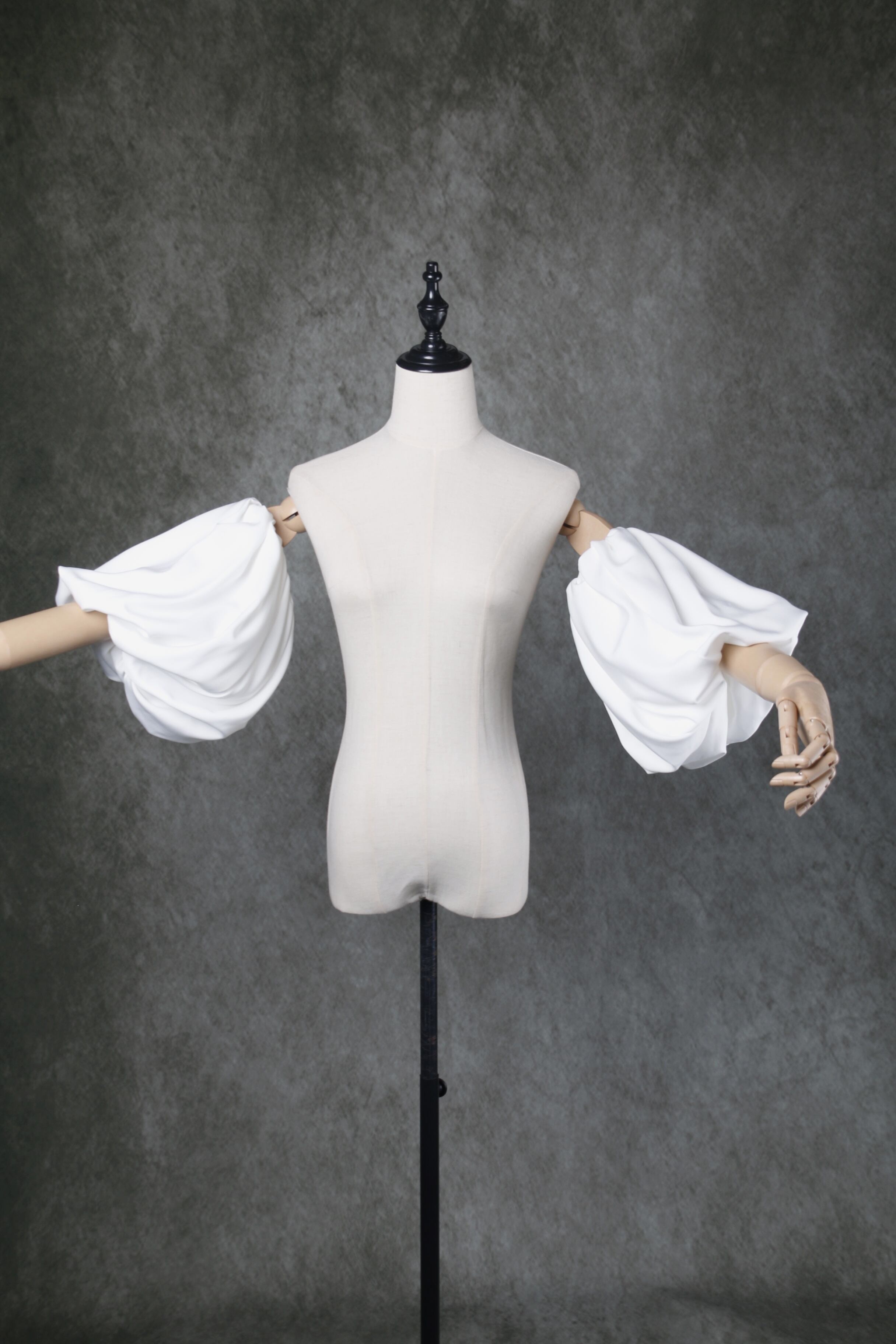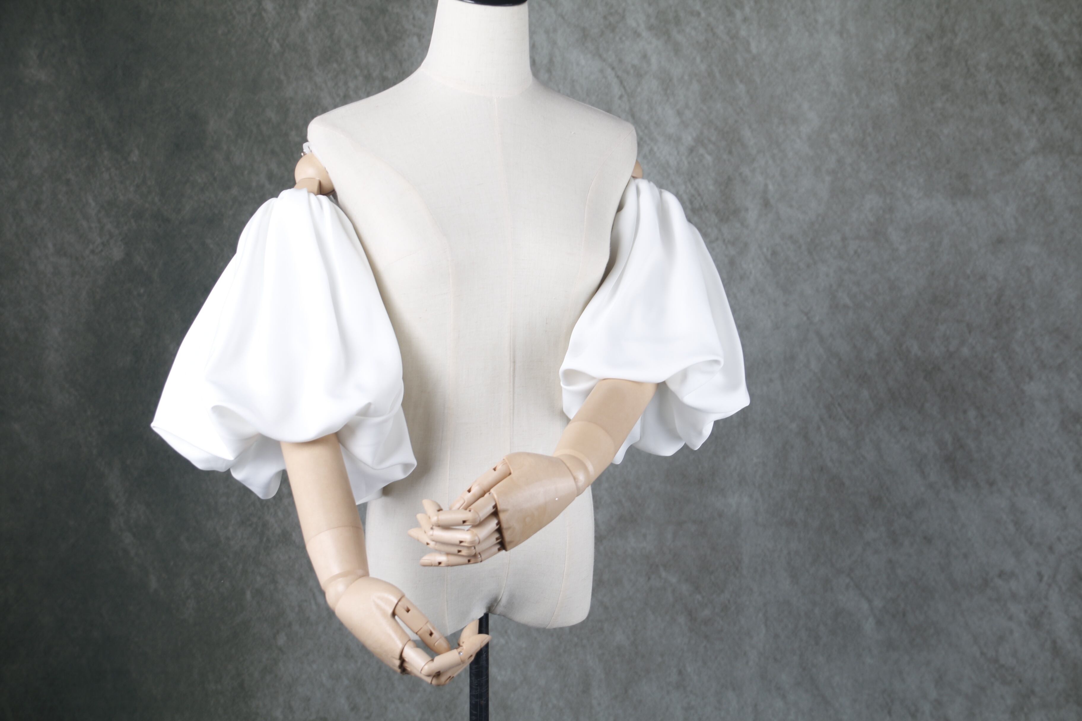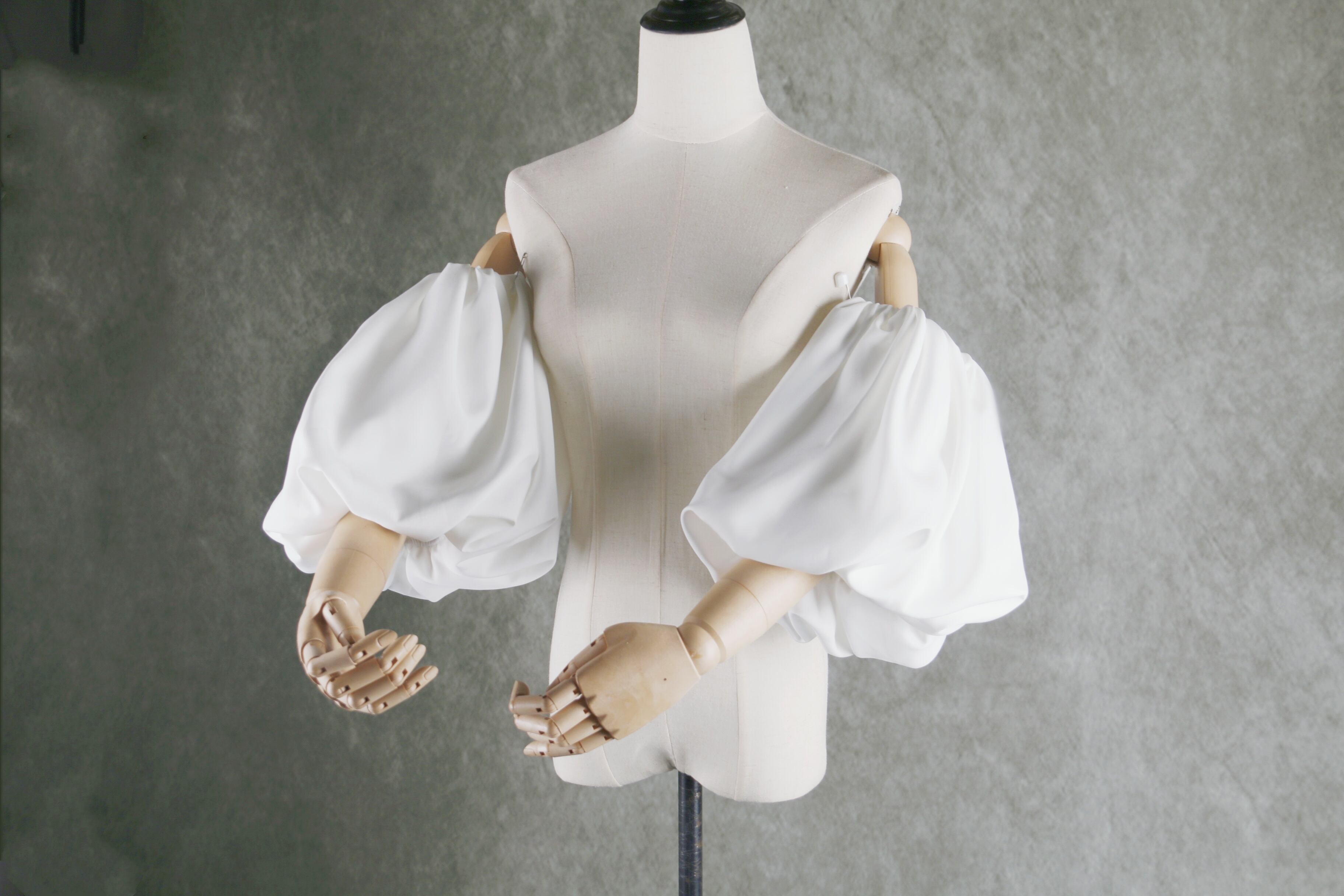 取り外し袖 ホワイト ショルダーの付け袖 三角形パフスリーブ ドレスアレンジ ウエディング お色直し クレープ生地