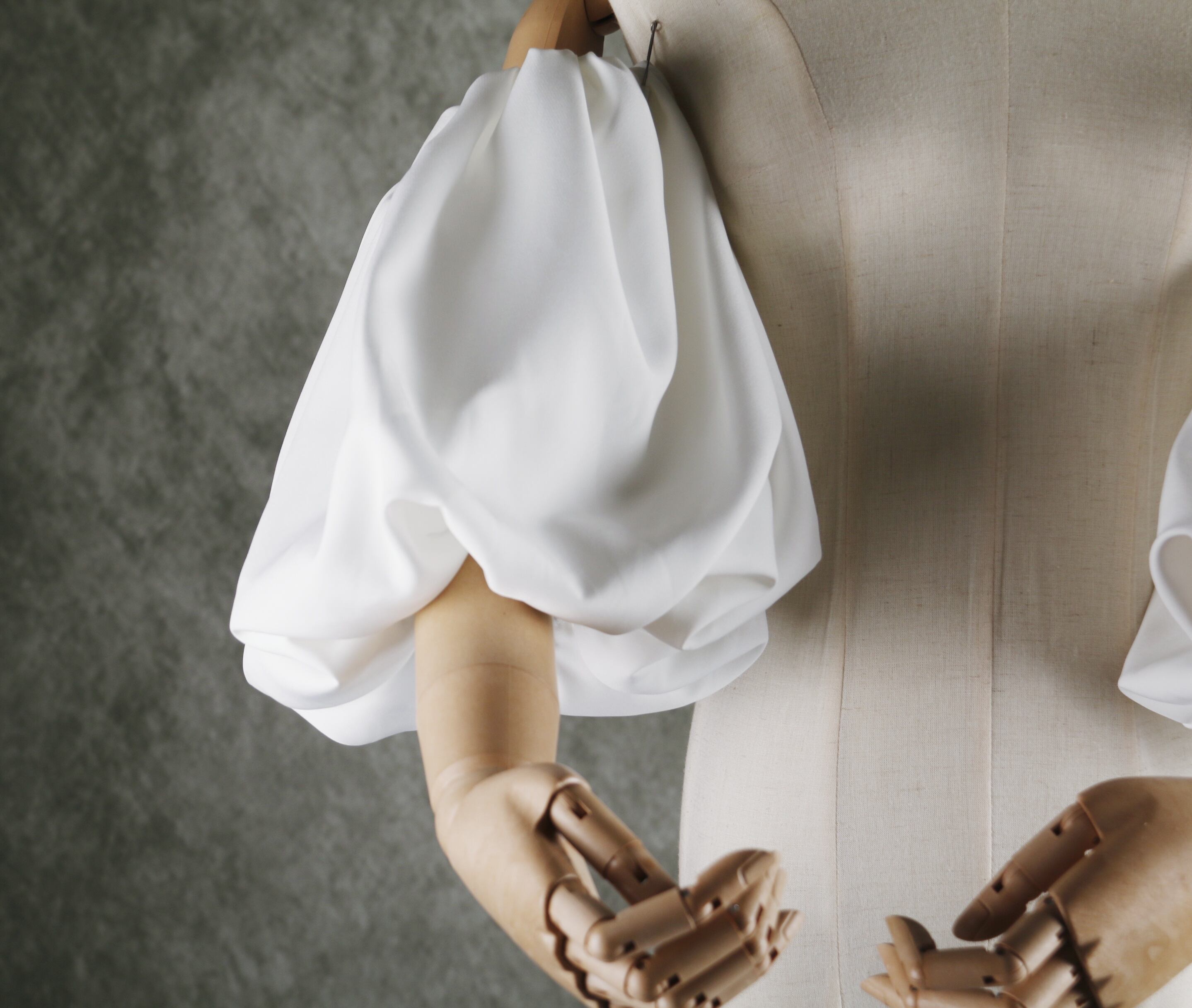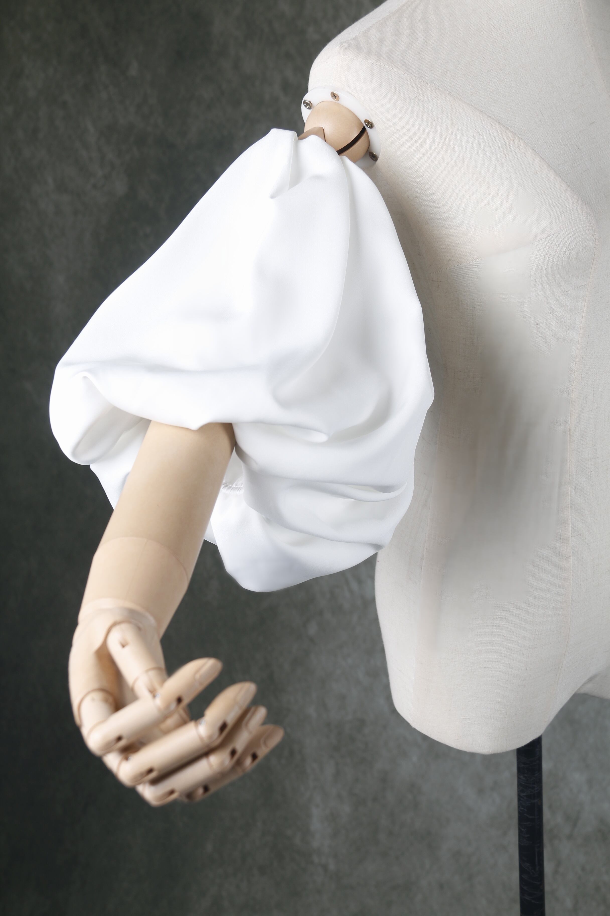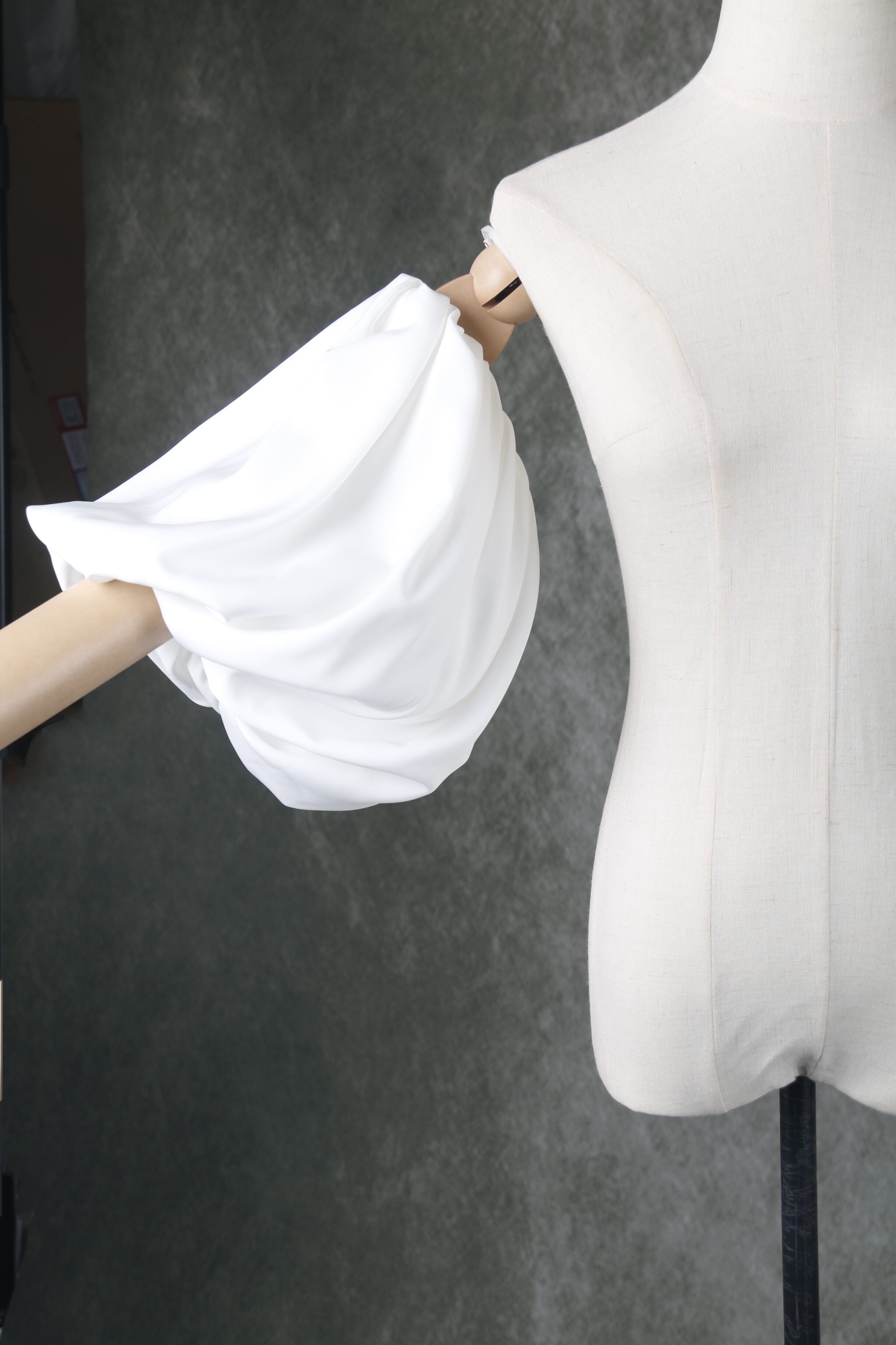 取り外し袖 ホワイト ショルダーの付け袖 三角形パフスリーブ ドレスアレンジ ウエディング お色直し クレープ生地