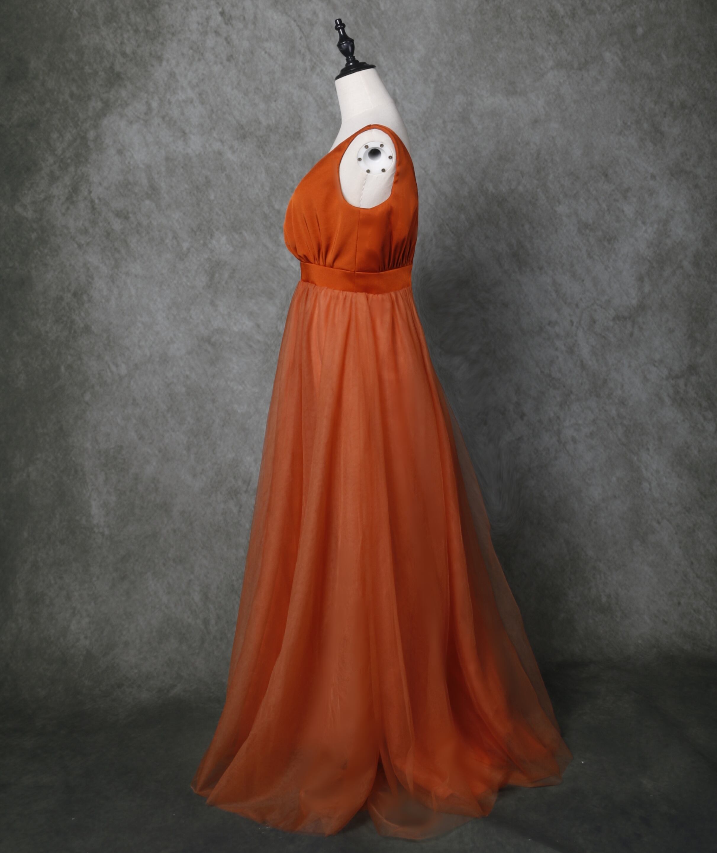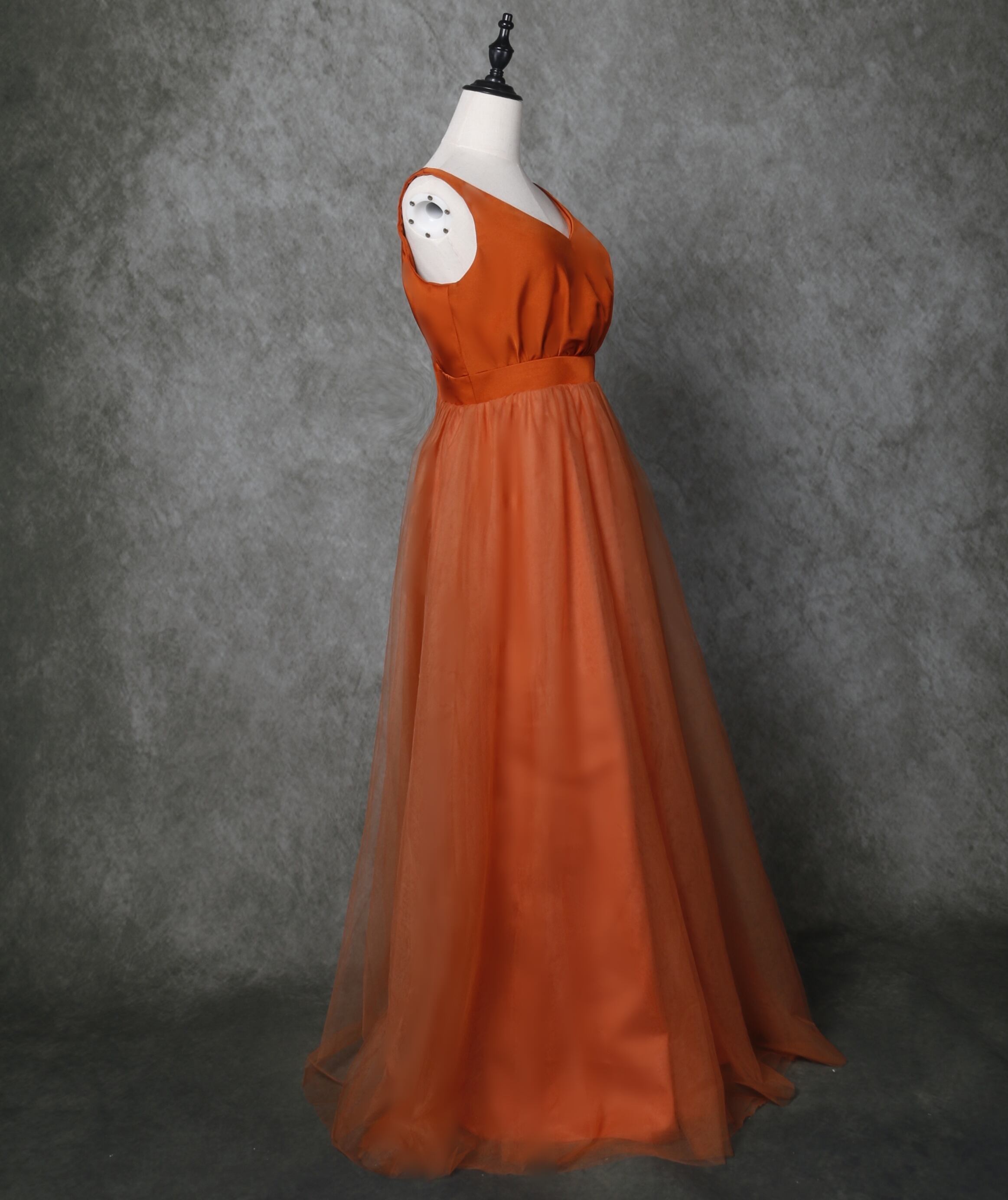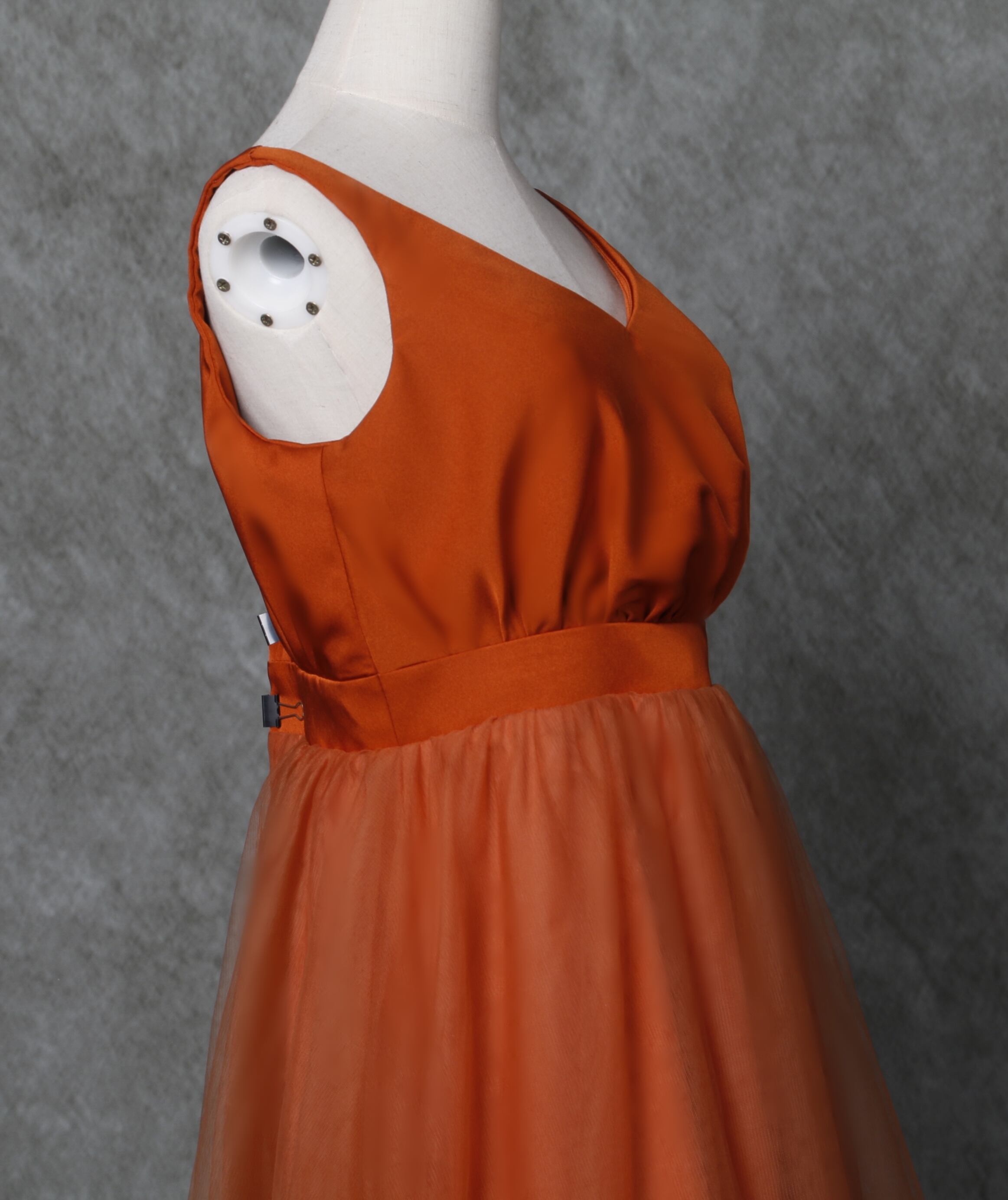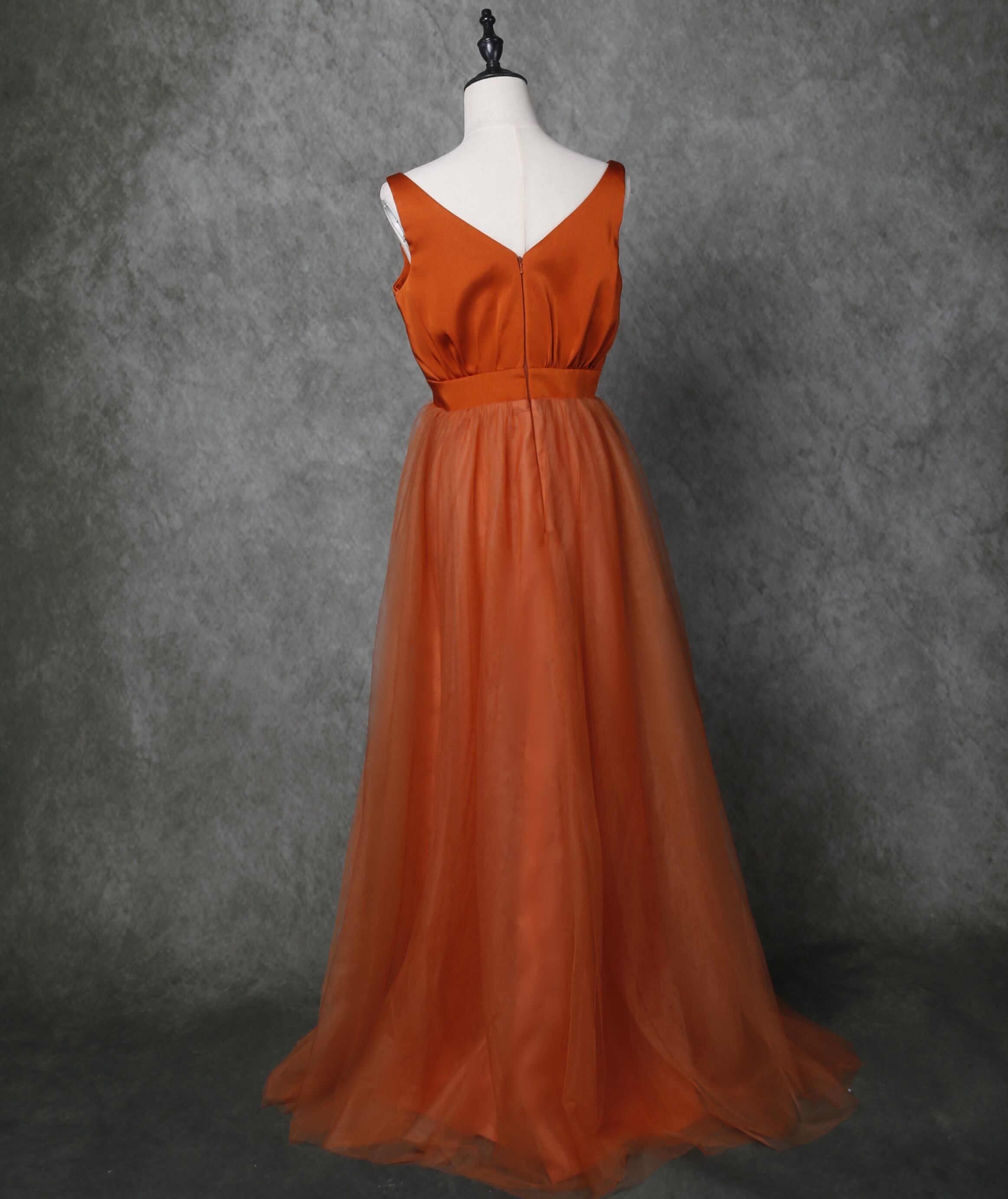 高品質 パーティードレス テラコッタ色 トレーン キャミソールカラードレス/花嫁/結婚式