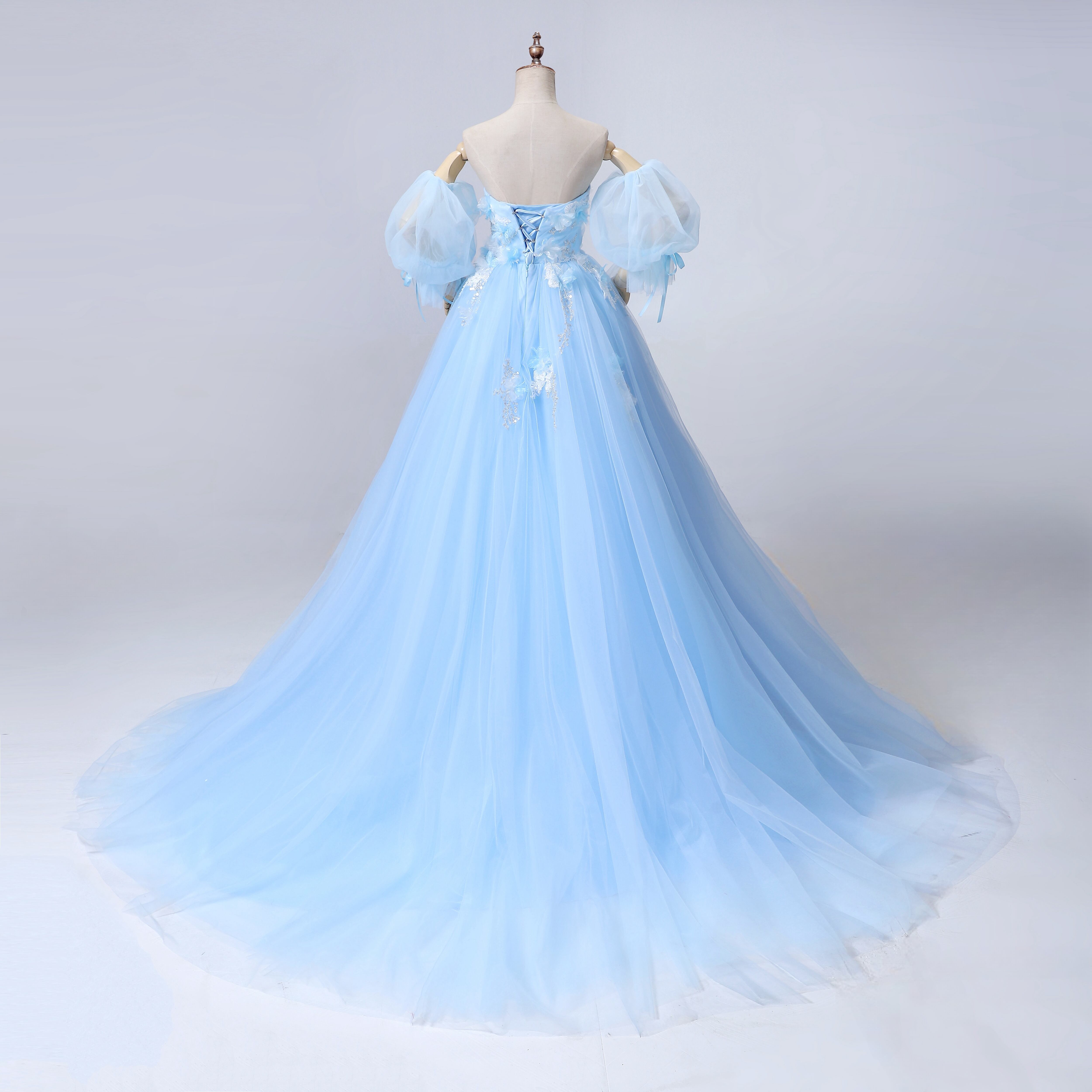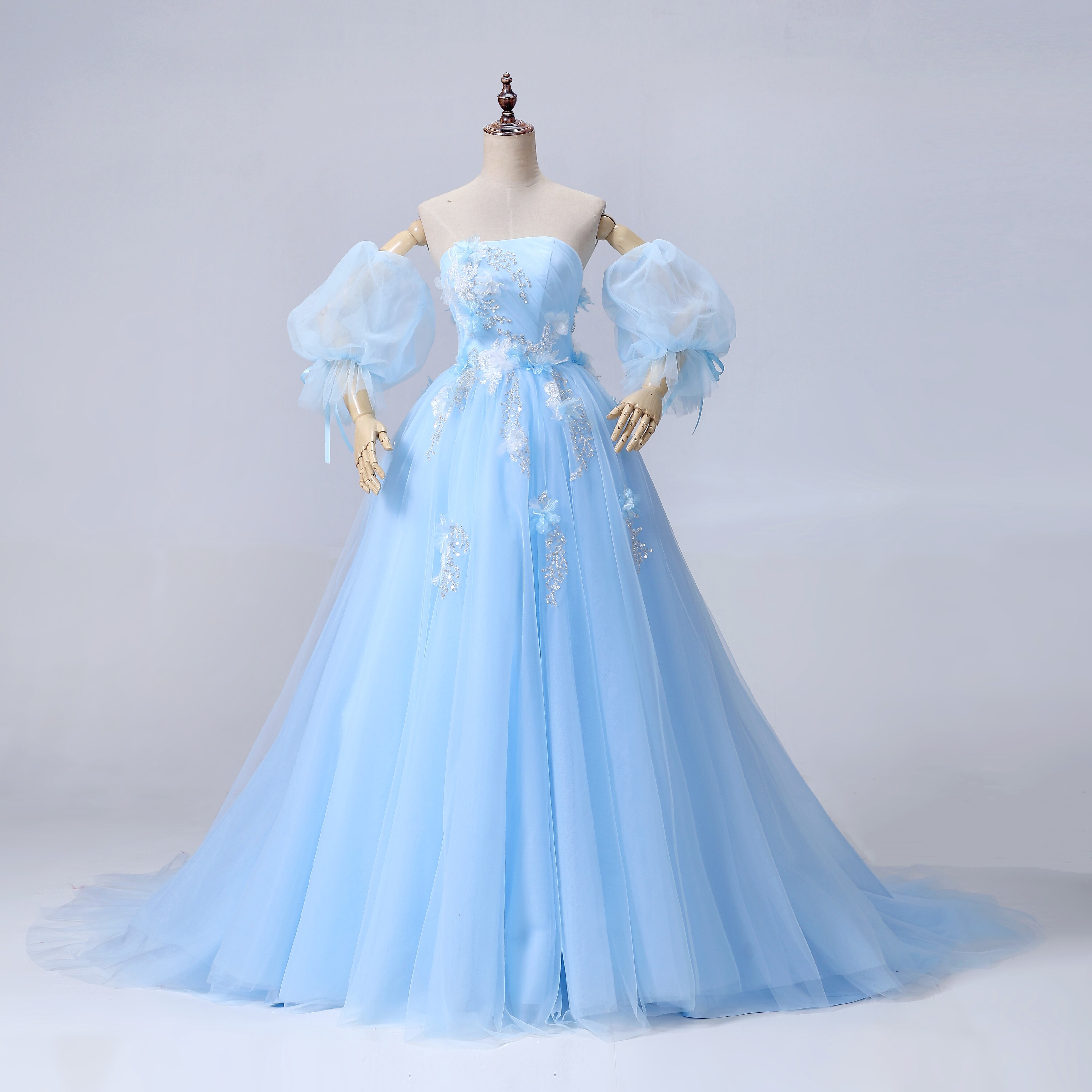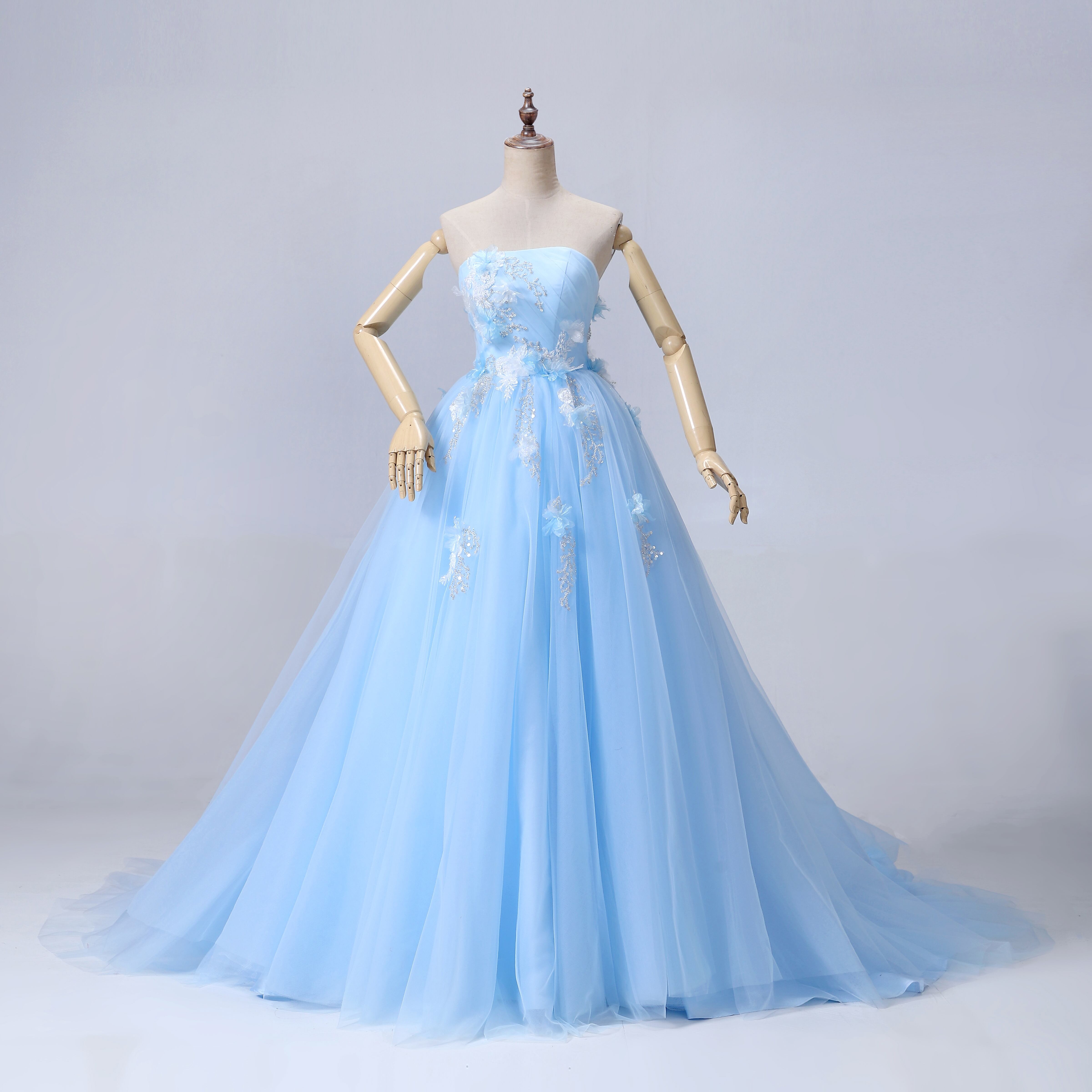 爽やかで優しいブルー 花モチーフ カラードレス プリンセスライン/花嫁/結婚式